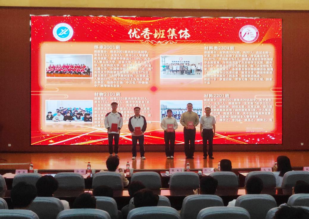 為進(jìn)一步加強(qiáng)校企合作,獎(jiǎng)學(xué)促優(yōu),大力發(fā)揮優(yōu)秀學(xué)子的示范引領(lǐng)作用,營(yíng)造學(xué)院良好的學(xué)風(fēng)氛圍,夯實(shí)班級(jí)建設(shè)成果,6月17日下午,材料科學(xué)與工程學(xué)院在鄠邑校區(qū)圖書(shū)館弘石學(xué)術(shù)報(bào)告廳舉辦“億德隆”獎(jiǎng)學(xué)金頒獎(jiǎng)典禮暨班級(jí)建設(shè)經(jīng)驗(yàn)總結(jié)分享會(huì)。校黨委副書(shū)記張木、學(xué)院黨委書(shū)記耿嶺、學(xué)生工作部副部長(zhǎng)畢軼慧出席典禮并為獲獎(jiǎng)個(gè)人和集體頒獎(jiǎng),學(xué)院全體學(xué)工干部、學(xué)生干部、學(xué)生代表400余人參加。頒獎(jiǎng)典禮由學(xué)院黨委副書(shū)記張?jiān)谱酥鞒帧?/p>