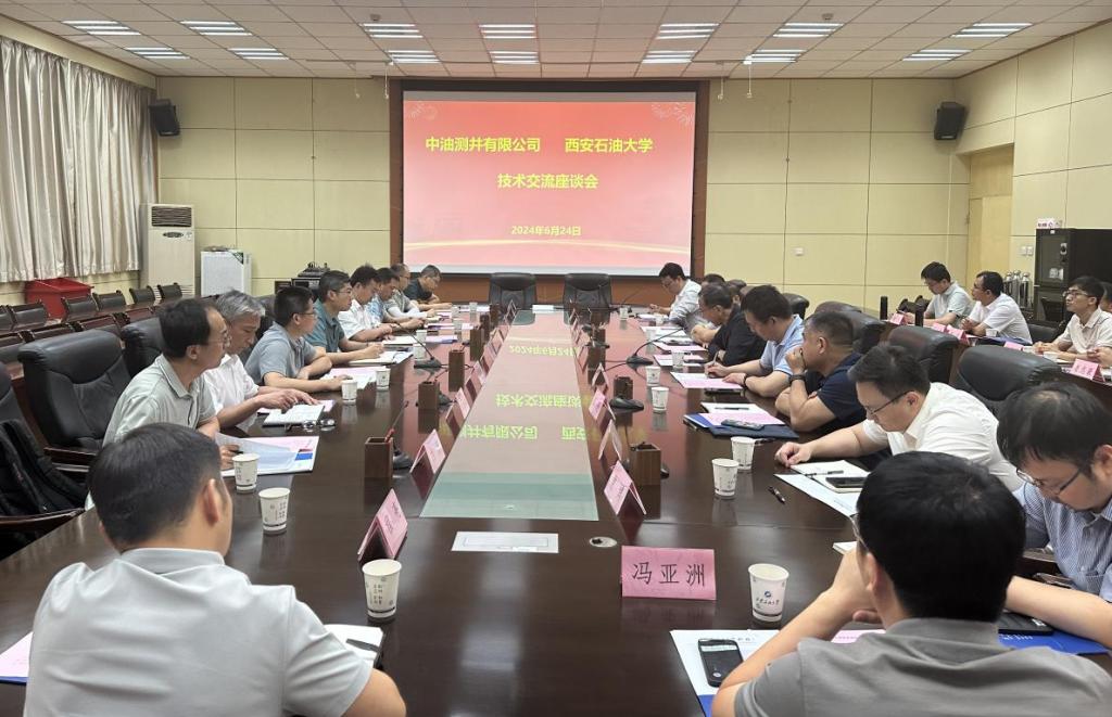 6月24日上午,中國石油集團測井有限公司科技管理部、測井技術(shù)研究院、地質(zhì)研究院負責人及技術(shù)專家一行10人來校開展技術(shù)交流活動。技術(shù)交流會在雁塔校區(qū)會議中心第一會議室召開,我校黨委副書記張木出席會議??蒲刑幪庨L張益主持會議。