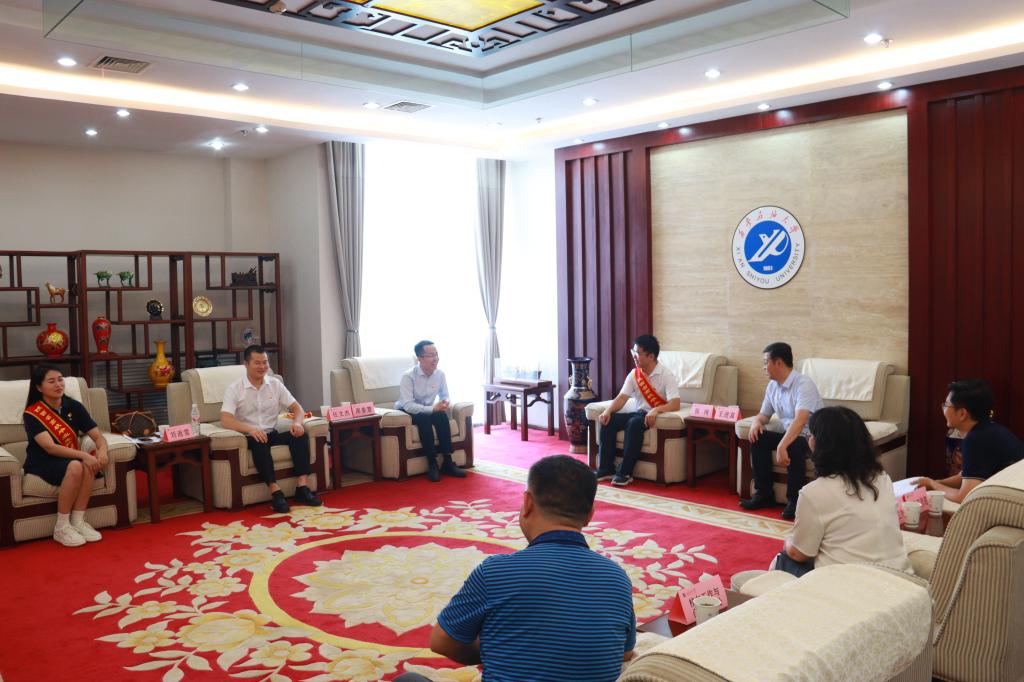 會(huì)前,校長(zhǎng)王進(jìn)富親切會(huì)見(jiàn)了報(bào)告團(tuán)一行。王進(jìn)富對(duì)5位優(yōu)秀畢業(yè)生代表來(lái)校作報(bào)告表示歡迎和感謝,對(duì)他們?cè)鶎印?bào)效祖國(guó)、服務(wù)人民的先進(jìn)事跡表示贊揚(yáng)與肯定。他指出,畢業(yè)生建功立業(yè)先進(jìn)事跡報(bào)告活動(dòng)的舉辦,就是以先進(jìn)榜樣為力量,引領(lǐng)廣大學(xué)生樹(shù)立正確的學(xué)習(xí)觀、就業(yè)觀和人生觀,立志做有理想、敢擔(dān)當(dāng)、能吃苦、肯奮斗的新時(shí)代好青年。他表示,學(xué)校將以此次分享會(huì)為契機(jī),充分挖掘?qū)W校優(yōu)秀校友先進(jìn)事跡,引導(dǎo)廣大同學(xué)向身邊的榜樣和先進(jìn)看齊,賡續(xù)紅色血脈,弘揚(yáng)鐵人精神,在新時(shí)代的廣闊天地綻放青春之花,同時(shí)也希望校友張珂(我校石工院2019屆本科畢業(yè)生)能夠一如既往地支持母校發(fā)展。
