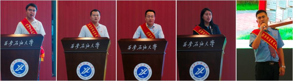 會(huì)上,我校石油工程學(xué)院2019屆本科畢業(yè)生,新疆維吾爾自治區(qū)庫(kù)車(chē)市烏尊鎮(zhèn)人民政府四級(jí)主任科員張珂;陜西職業(yè)技術(shù)學(xué)院2019屆畢業(yè)生,陜西省彬州市義門(mén)鎮(zhèn)人民政府農(nóng)業(yè)農(nóng)村辦主任任文杰;陜西工業(yè)職業(yè)技術(shù)學(xué)院2014屆畢業(yè)生,西安凌科檢測(cè)科技有限公司總經(jīng)理周春慧;陜西國(guó)防工業(yè)職業(yè)技術(shù)學(xué)院2016屆畢業(yè)生,陜西省咸陽(yáng)市格林美化工程有限公司設(shè)計(jì)師劉逍雪;陜西鐵路工程職業(yè)技術(shù)學(xué)院2015屆畢業(yè)生,中國(guó)鐵路西安局集團(tuán)有限公司寶雞車(chē)務(wù)段青石崖車(chē)站站長(zhǎng)張?chǎng)?,先后分享了他們各自建功立業(yè)的先進(jìn)事跡,并對(duì)現(xiàn)場(chǎng)同學(xué)們?cè)趯W(xué)習(xí)、實(shí)習(xí)、就業(yè)等方面遇到的問(wèn)題和疑惑進(jìn)行了交流與解答。