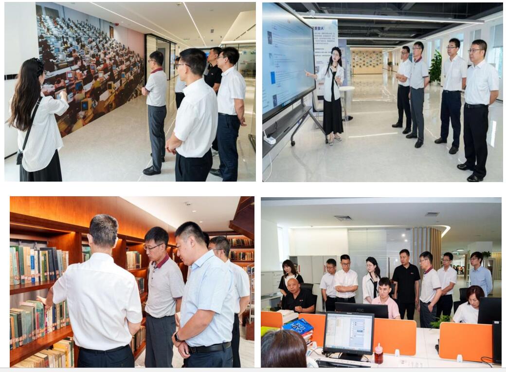 會前,在超星集團(tuán)有關(guān)領(lǐng)導(dǎo)的陪同下,蘇文甫一行參觀了超星數(shù)字園區(qū),實(shí)地考察了超星新一代數(shù)字化平臺與資源建設(shè),AI技術(shù)在教育場景下的探索與應(yīng)用,并體驗(yàn)了AI館員、元宇宙圖書館、智慧教室等未來學(xué)習(xí)中心的最新建設(shè)成果。