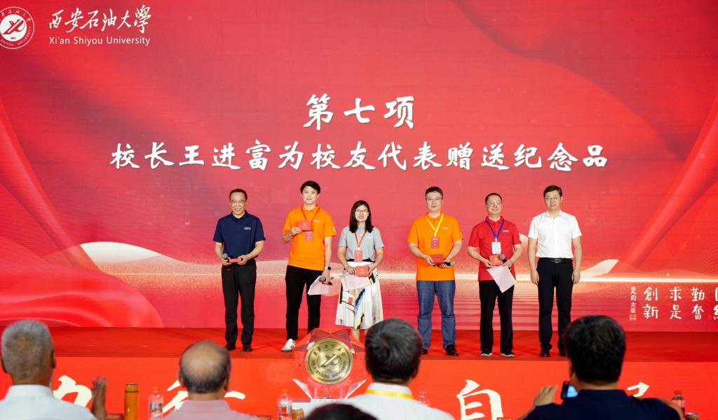 校長王進(jìn)富致辭,對專程返?!盎丶摇钡男S鸭凹覍賯冎乱詿崃业臍g迎,向長期以來關(guān)心母校發(fā)展的廣大校友表達(dá)衷心的感謝。他以《憶芳華 致青春 向未來》為題,從“歷史與傳承”“成長與記憶”“未來與期待”三個方面向校友們報告了學(xué)校的發(fā)展歷程、辦學(xué)成績和奮斗目標(biāo)。他強(qiáng)調(diào),學(xué)校將進(jìn)一步貫徹落實(shí)第三次黨代會精神,通過六大行動全面提升人才培養(yǎng)質(zhì)量水平、推動學(xué)科發(fā)展進(jìn)階升級、構(gòu)建科技創(chuàng)新服務(wù)體系、打造有競爭力人才隊伍、拓展對外合作發(fā)展格局、提升學(xué)校持續(xù)發(fā)展動能,實(shí)現(xiàn)學(xué)校高質(zhì)量發(fā)展。他表示,學(xué)校的發(fā)展離不開廣大校友的關(guān)注和支持,學(xué)校將積極為校友搭建平臺、提供資源、共享信息,以更有溫度的服務(wù)、更有深度的交流、更有力度的合作,建強(qiáng)校友與母校發(fā)展共同體,攜手開創(chuàng)校友個人事業(yè)和學(xué)校高質(zhì)量發(fā)展新局面。最后,他向全體校友提出倡議:一是深度互動,構(gòu)建情感共鳴、價值共同、信息共通、資源共享、發(fā)展共贏的命運(yùn)共同體;二是加大支持,在重大項(xiàng)目實(shí)施、科技平臺建設(shè)、科研項(xiàng)目合作及畢業(yè)生就業(yè)等方面給予學(xué)校更多支持;三是講好故事,講好西石大人胸懷大局、扎根西北、拼搏奉獻(xiàn)的故事,講好西石大人錨定強(qiáng)國戰(zhàn)略、服務(wù)能源行業(yè)、培育杰出人才的故事。