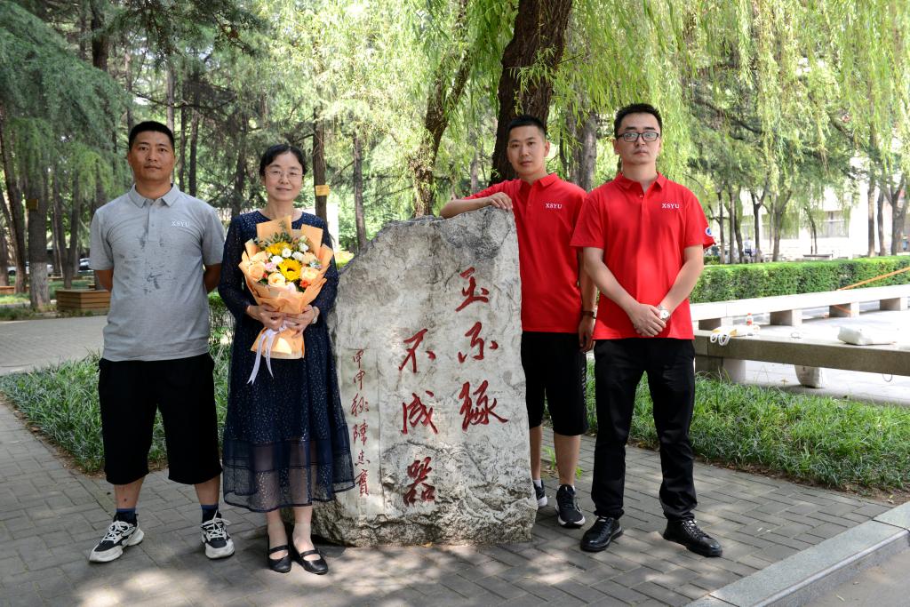 王進(jìn)富向5名校友代表贈送了精心準(zhǔn)備的“一滴油”印章紀(jì)念品,以此表達(dá)對他們長期支持學(xué)校的感激之情。