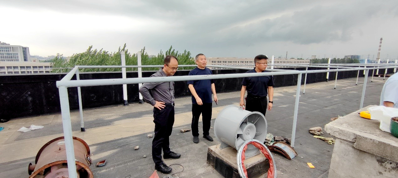 在12號學(xué)生宿舍樓頂——消防專項行動學(xué)生宿舍整改項目施工現(xiàn)場,張驍勇、趙健詳細(xì)了解樓頂消防排風(fēng)軸流風(fēng)機(jī)的更換進(jìn)展情況和室內(nèi)煙感更新維護(hù)進(jìn)度安排,強(qiáng)調(diào)要嚴(yán)格對照消防標(biāo)準(zhǔn),加快施工進(jìn)度,保證工程質(zhì)量,確保盡快完成整改任務(wù)。