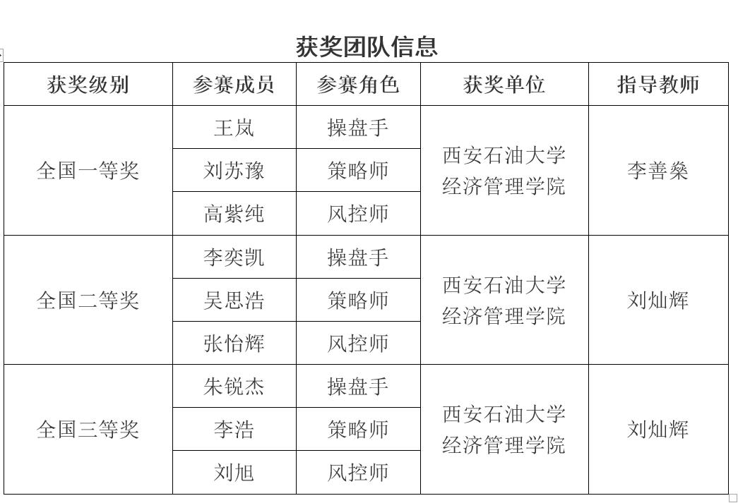 本次獲獎是我校繼2021年首次參加該項賽事以來獲得的最好成績,全國一等獎獲得者來自經(jīng)濟(jì)管理學(xué)院金融專業(yè)特許金融分析師(CFA)班,體現(xiàn)了我校金融專業(yè)團(tuán)結(jié)奮進(jìn)的精神風(fēng)貌和創(chuàng)新改革的發(fā)展成效。經(jīng)濟(jì)管理學(xué)院將繼續(xù)鼓勵和指導(dǎo)學(xué)生參加各類學(xué)科競賽,圍繞以賽促學(xué)、以賽促教、以賽促創(chuàng)的要求,將學(xué)科競賽融入培養(yǎng)環(huán)節(jié),積極拓展第二課堂,更加重視學(xué)生自主創(chuàng)新創(chuàng)業(yè)綜合能力的培養(yǎng),更好地推動人才培養(yǎng)質(zhì)量提升。