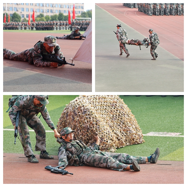 “實(shí)戰(zhàn)運(yùn)用、隊(duì)列行進(jìn)、養(yǎng)成動(dòng)作、格斗術(shù)、刺殺操”五個(gè)環(huán)節(jié)的軍訓(xùn)成果一一展示在大家面前。在整齊的動(dòng)作和嘹亮的口號(hào)中,同學(xué)們用昂揚(yáng)向上的姿態(tài)展示了14天的軍訓(xùn)訓(xùn)練成果,展現(xiàn)西石大學(xué)子自強(qiáng)自信、團(tuán)結(jié)拼搏的精神風(fēng)貌。