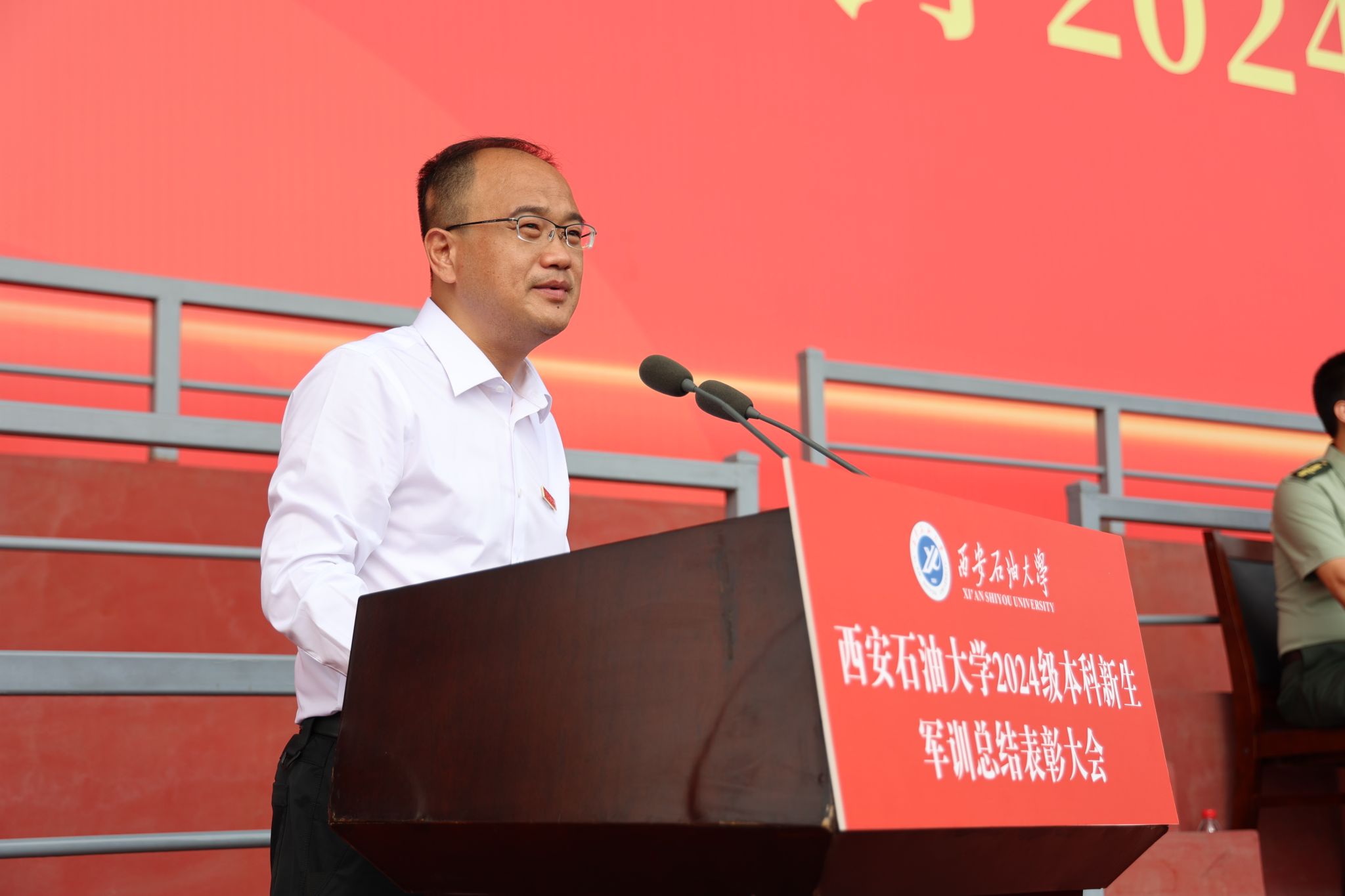 9月15日上午,我校2024級(jí)本科新生軍訓(xùn)總結(jié)表彰大會(huì)在鄠邑校區(qū)東田徑場舉行。校長王進(jìn)富、副校長張君濤、副校長趙健,中國人民解放軍某部王林上校出席大會(huì)。軍訓(xùn)領(lǐng)導(dǎo)小組成員單位負(fù)責(zé)人,全體參訓(xùn)干部、全體教官及2024級(jí)全體本科生共4800余人參加大會(huì)。大會(huì)由軍訓(xùn)旅政委、武裝部部長王亮主持。