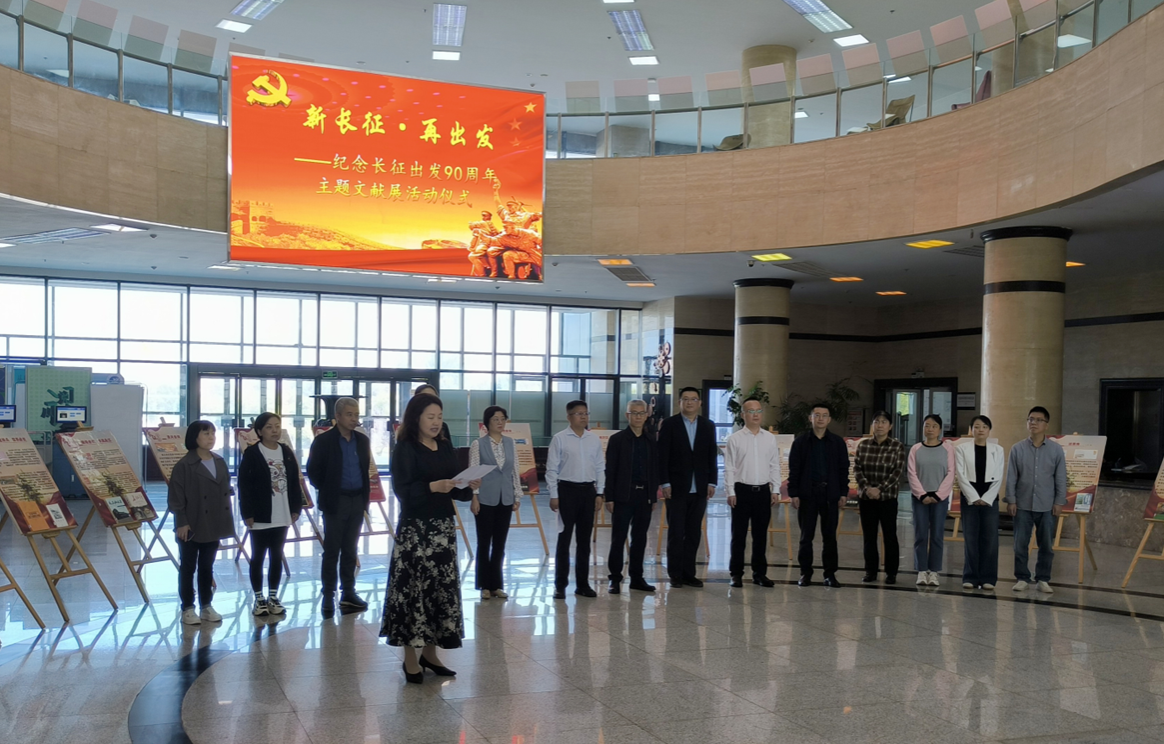 為紀念紅軍長征出發(fā)90周年,引導師生讀者弘揚和繼承長征精神,緬懷革命先輩的豐功偉績,10月9日上午,圖書館、馬克思主義學院、人文學院在鄠邑校區(qū)圖書館聯(lián)合舉辦“新長征·再出發(fā)”紀念長征出發(fā)90周年主題文獻展。副校長張驍勇出席開幕式。相關(guān)部門、學院負責人,圖書館工作人員,馬克思主義學院、人文學院學生代表共計80余人參加活動。
