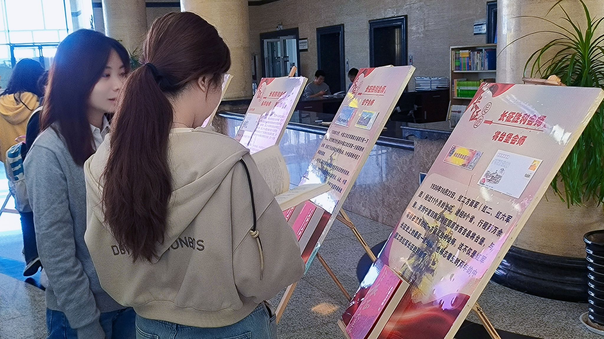 隨后,讀者協(xié)會的4名同學朗誦了4首紀念長征的詩詞作品。