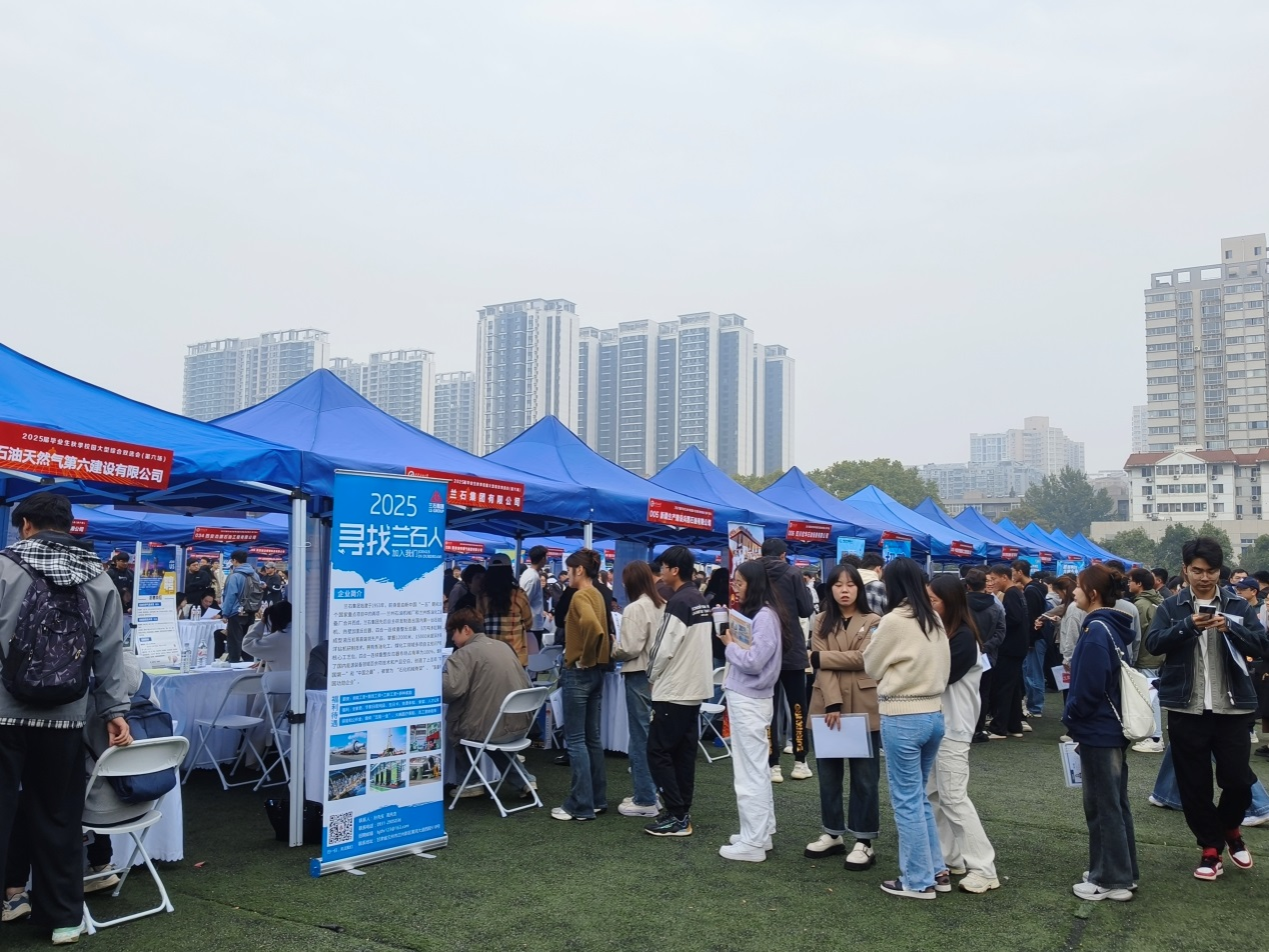 丹楓迎秋,金風(fēng)送爽。10月25日上午,我校在雁塔校區(qū)田徑場舉辦最后一場2025屆畢業(yè)生秋季校園招聘綜合雙選會(huì)。來自全國中石化中原石油工程設(shè)計(jì)有限公司、中國石油天然氣第六建設(shè)有限公司、新疆生產(chǎn)建設(shè)兵團(tuán)石油有限公司、中煤陜西能源化工集團(tuán)有限公司、陜西建工鐵建工程有限公司、陜西地礦物化探隊(duì)有限公司、西安秦華燃?xì)饧瘓F(tuán)有限公司、齊魯理工學(xué)院、堯柏特種水泥集團(tuán)有限公司,淄博市人社局組團(tuán)、渭南市人社局組團(tuán)的省內(nèi)外共計(jì)150余家企事業(yè)單位進(jìn)校招聘,行業(yè)領(lǐng)域覆蓋我校所有專業(yè)設(shè)置。來自我校及兄弟院校的3800余名本科生、研究生參加應(yīng)聘。