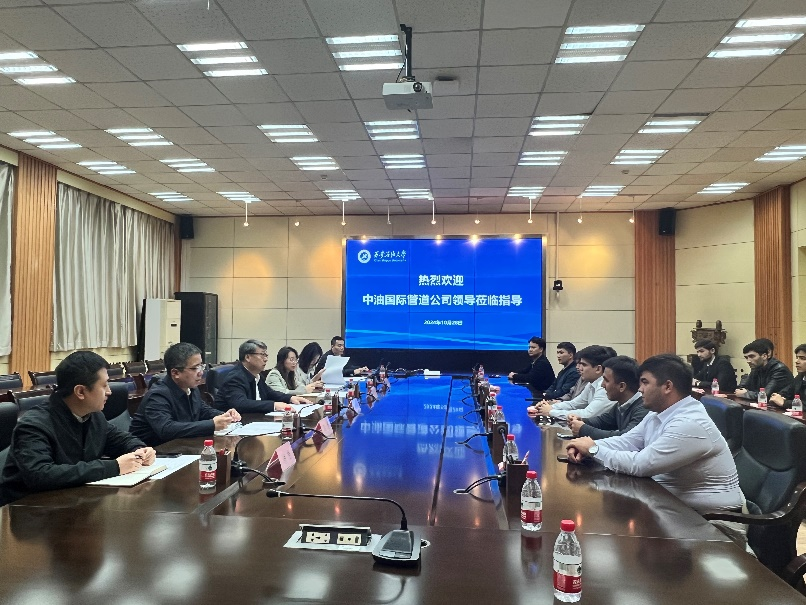 10月28日上午,中油國(guó)際管道有限公司總經(jīng)理助理劉濤來??赐繂栔屑⒅兴F箜?xiàng)目在校各專業(yè)學(xué)生,了解學(xué)生學(xué)習(xí)、生活情況并與項(xiàng)目學(xué)生座談。副校長(zhǎng)張驍勇在座談前會(huì)見劉濤,雙方就項(xiàng)目學(xué)生培養(yǎng)事宜交換了意見,學(xué)院項(xiàng)目負(fù)責(zé)人員參與交流。