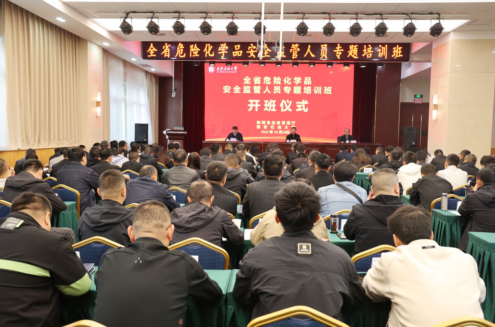 為進(jìn)一步提升我省危險(xiǎn)化學(xué)品監(jiān)管人員安全監(jiān)管水平,有效遏制危險(xiǎn)化學(xué)品領(lǐng)域安全事故,10月28日上午,由省應(yīng)急管理廳主辦、西安石油大學(xué)培訓(xùn)中心承辦的全省危險(xiǎn)化學(xué)品安全監(jiān)管人員培訓(xùn)班在西安石油大學(xué)明德校區(qū)順利開班。省應(yīng)急管理廳黨委副書記孟中華,我校黨委委員、副校長(zhǎng)趙健及來自全省12個(gè)市(區(qū))、危險(xiǎn)化學(xué)品重點(diǎn)縣(區(qū))和29個(gè)化工園區(qū)的120名安全監(jiān)管人員出席開班儀式,儀式由省應(yīng)急管理廳?;幪庨L(zhǎng)陳坤山主持。
