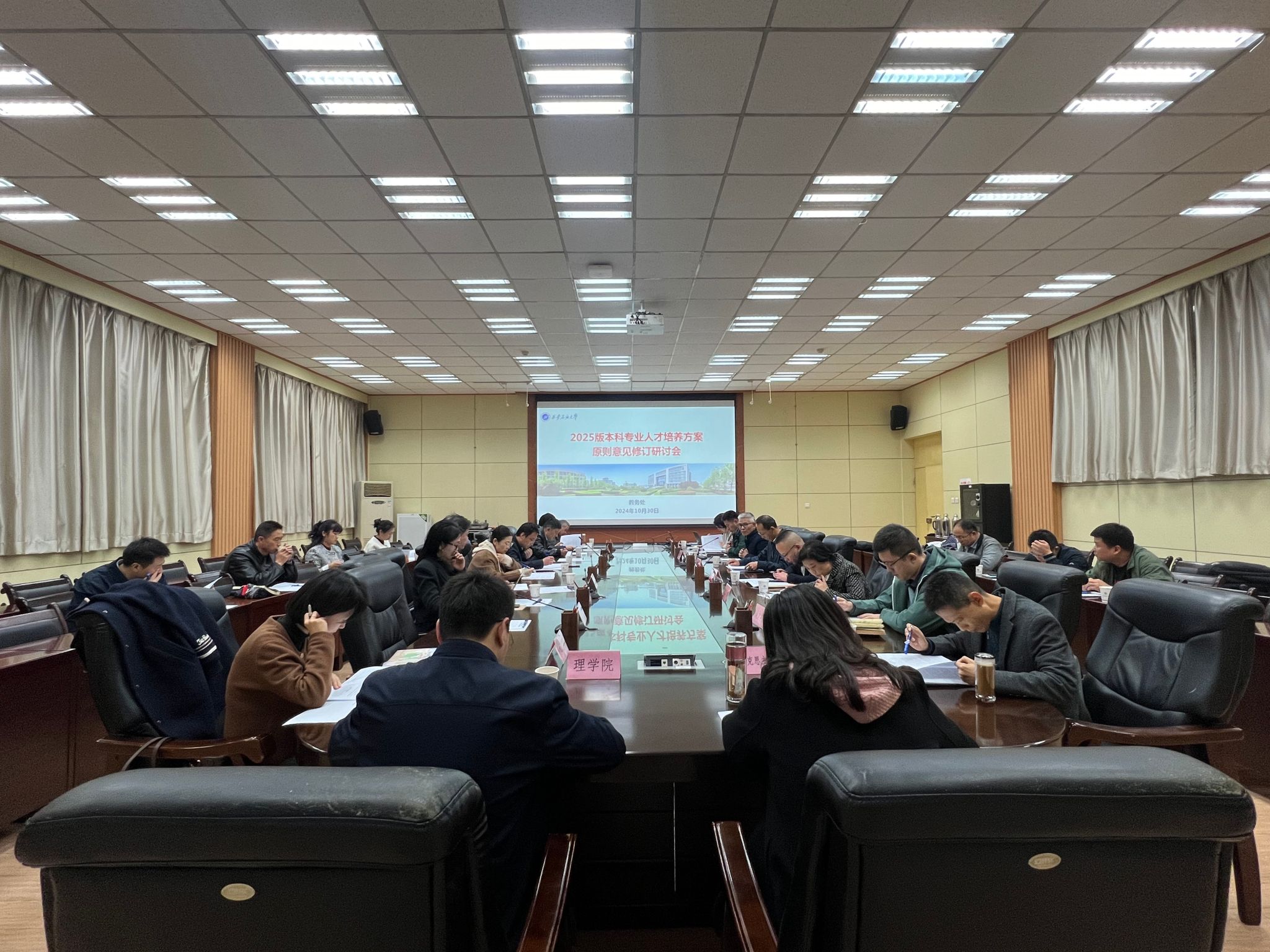 10月30日下午,學(xué)校在雁塔校區(qū)第一會議室召開2025版本科專業(yè)人才培養(yǎng)方案原則意見修訂研討會,副校長張君濤出席會議并講話,相關(guān)職能部門及各教學(xué)單位副院長參加研討會。