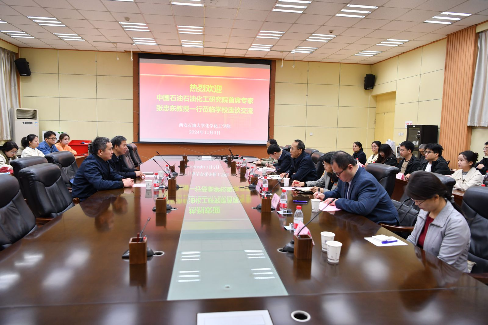 11月3日上午,學(xué)校在雁塔校區(qū)會(huì)議中心第一會(huì)議室,舉行中國(guó)石油石油化工研究院首席專家張忠東教授學(xué)術(shù)交流座談會(huì)。副校長(zhǎng)張君濤出席會(huì)議,化學(xué)化工學(xué)院班子成員、師生代表30余人參加了座談會(huì)。