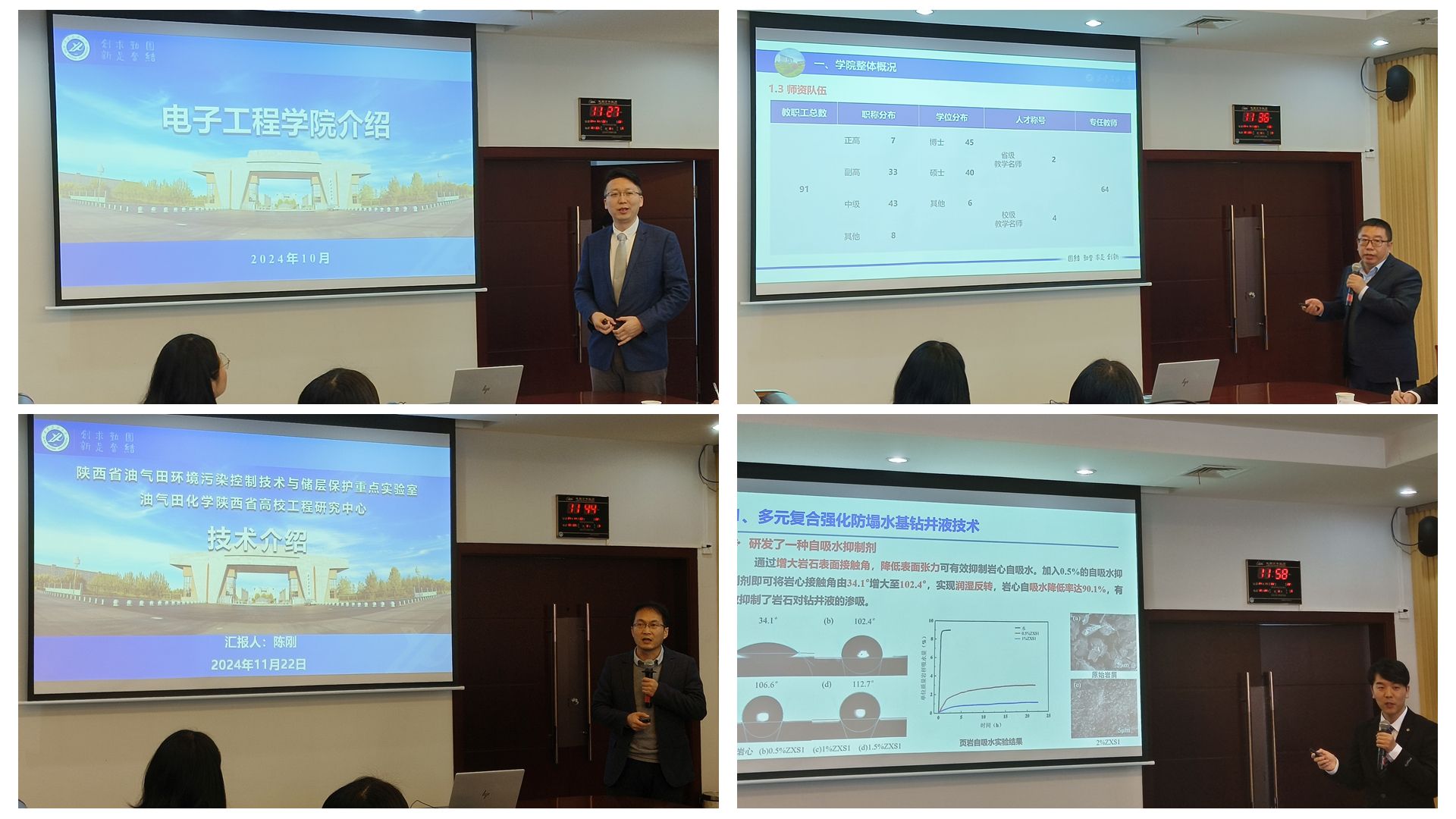 會上,電子工程學(xué)院院長李飛、計(jì)算機(jī)學(xué)院院長劉志坤、化學(xué)化工學(xué)院教授陳剛及石油工程學(xué)院博士教師王宗輪就科研團(tuán)隊(duì)及科研成果分別進(jìn)行了匯報展示。