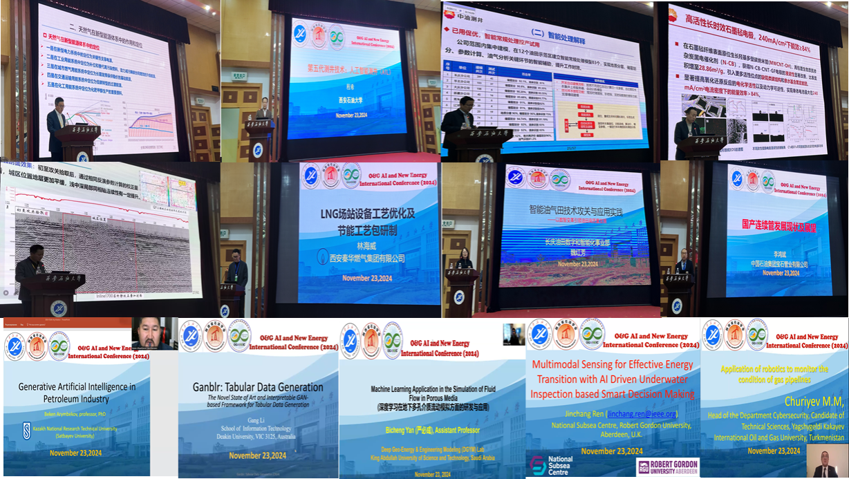 在會議交流階段,2024油氣AI與新能源國際會議以“油氣AI科技創(chuàng)新,能源共謀綠色發(fā)展”為主題,特邀來自中國、英國、澳大利亞、沙特阿拉伯、哈薩克斯坦、土庫曼斯坦等國家的13位知名專家學者,通過線下、線上,圍繞AI在油氣勘探、測井、地震、管道工程、地面工程、工程材料研究中的應用以及地熱、光伏、儲能等新能源領域做了精彩的學術報告,吸引了校內外200余名師生參加,為理解油氣AI與新能源技術現(xiàn)狀和發(fā)展趨勢提供了寶貴機會。