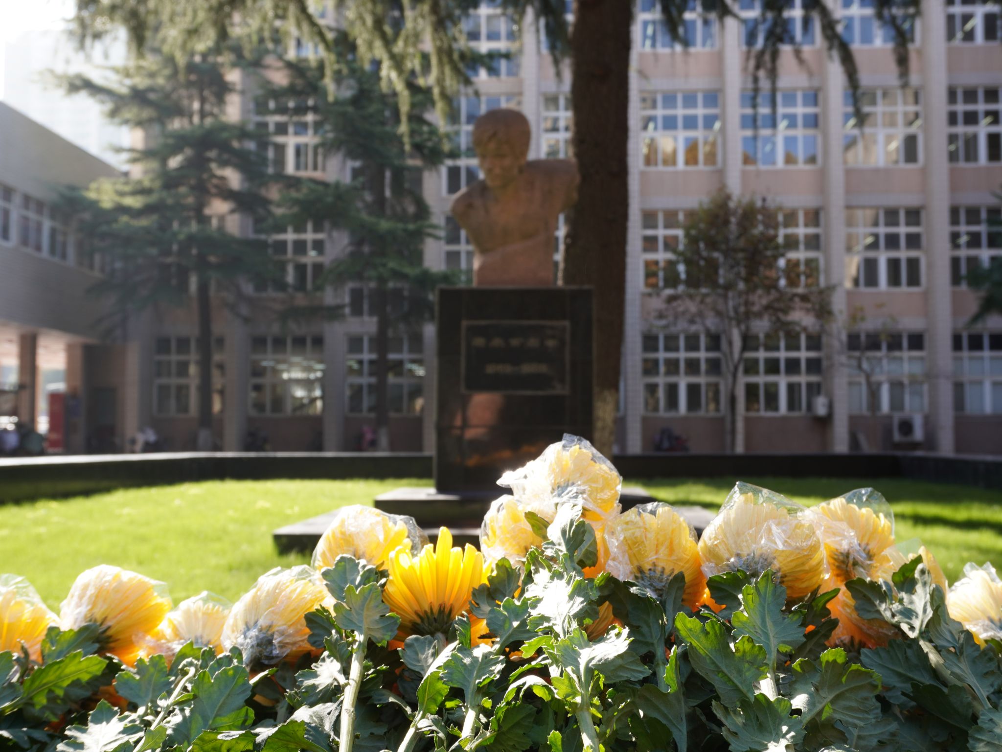 陽光照耀下的唐春雨烈士塑像莊重祥和。全體師生瞻仰唐春雨烈士塑像,默哀一分鐘。常江緩步向前整理了花圈挽聯(lián),隨后全體師生依次向唐春雨烈士敬獻(xiàn)鮮花,鞠躬致敬。