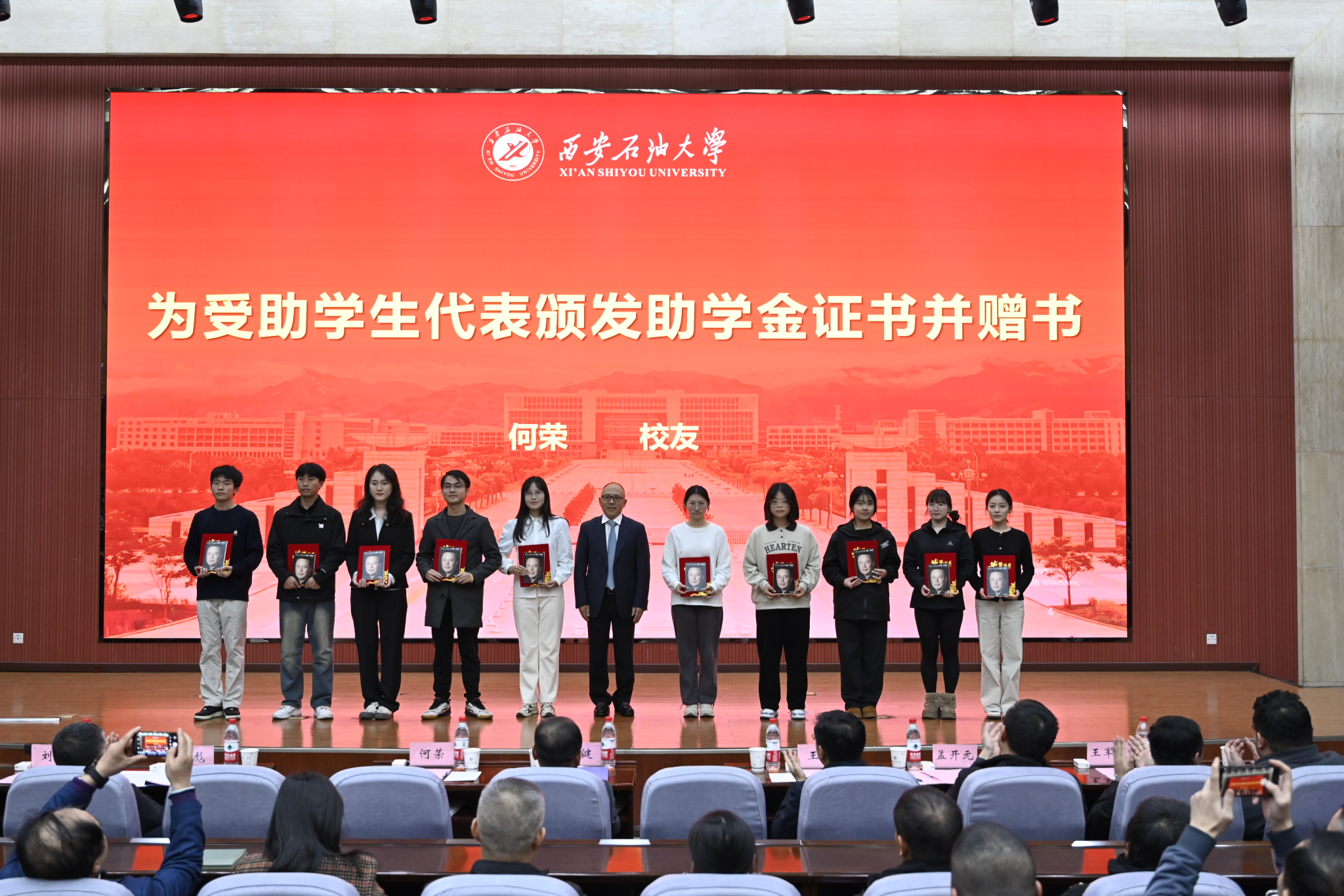 12月5日下午,西安石油大學(xué)2024年騰輝助學(xué)金發(fā)放儀式暨何榮校友報(bào)告會(huì)在鄠邑校區(qū)弘石學(xué)術(shù)報(bào)告廳舉行。西安石油大學(xué)副校長趙健,西安騰輝電氣有限公司總經(jīng)理、“騰輝助學(xué)金”主要出資人、西安石油大學(xué)1992屆校友何榮出席儀式。學(xué)生工作處、校友工作與合作交流處、校團(tuán)委、機(jī)械工程學(xué)院負(fù)責(zé)人,西安騰輝電氣有限公司員工代表,2024年騰輝助學(xué)金獲得者,各院(系)師生代表共400余人參加了活動(dòng)。