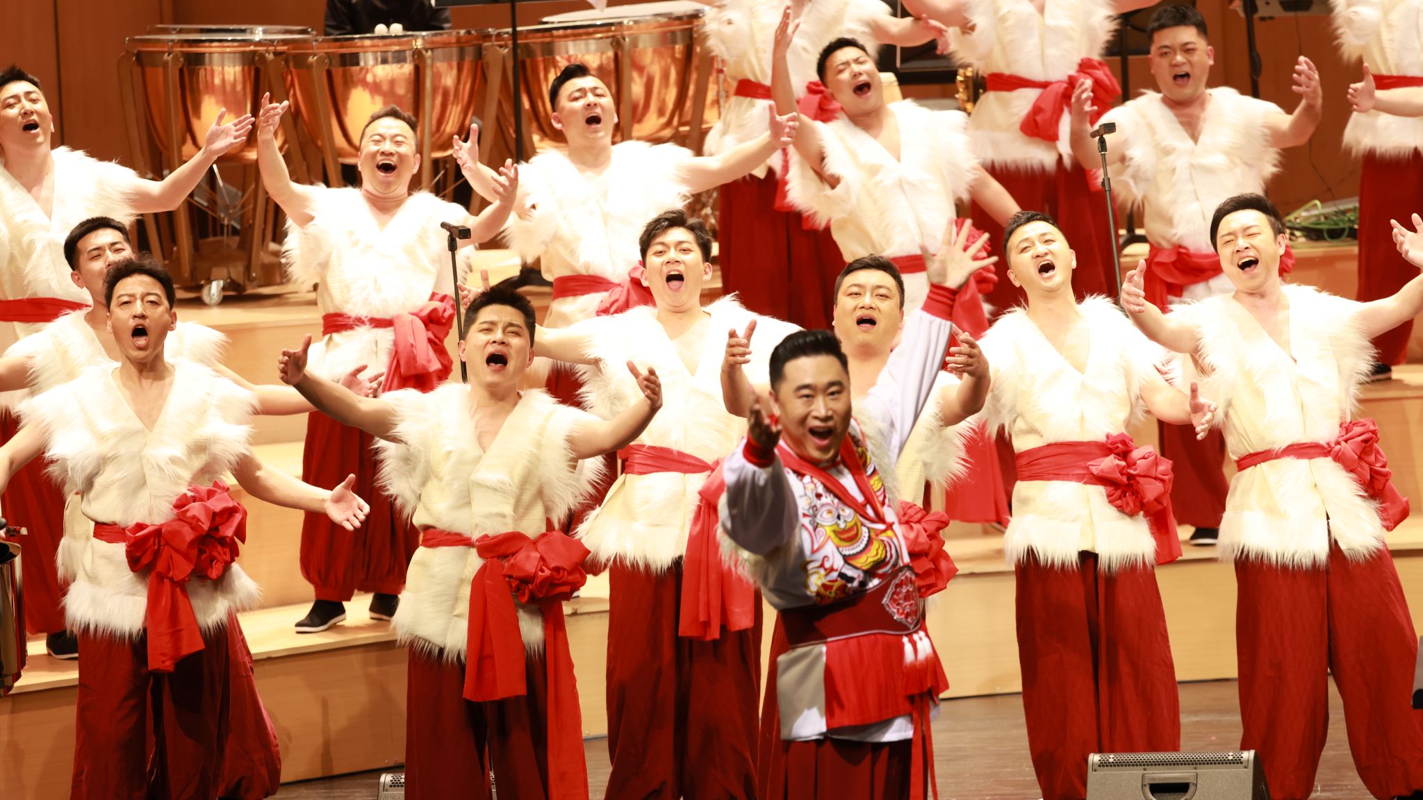 整場音樂會共分“古典之風”“流行樂章”“各地民歌”三個篇章,巧妙融合了榆林這座城市獨有的歷史文化底蘊與現(xiàn)代蓬勃朝氣。其中,拉丁語演唱的選自清唱劇《布蘭詩歌》中的唱段“在酒館里”,作為世界經(jīng)典男聲合唱作品,一展合唱團的專業(yè)水準;韓語演唱的歌曲《你不要擔心》,則是在榆林地區(qū)的首次公演,為觀眾帶來別樣的聽覺體驗。此外,在排練期間不脛而走的清澗方言歌曲《可想你哩》,憑借網(wǎng)絡(luò)高達5000萬的播放量,成為當晚的壓軸曲目。演出時,臺上臺下齊聲合唱,全場互動熱烈,將氛圍推向高潮。一位觀眾在結(jié)束時不禁感慨:“原本對本土音樂會期待不高,沒想到卻帶來巨大的驚喜!榆林如今也與世界接軌了!”更有觀眾不遠千里,從海南、山西、內(nèi)蒙、西安等地專程趕來榆林觀看,對合唱團成員的高水平表現(xiàn)給予了高度贊譽。