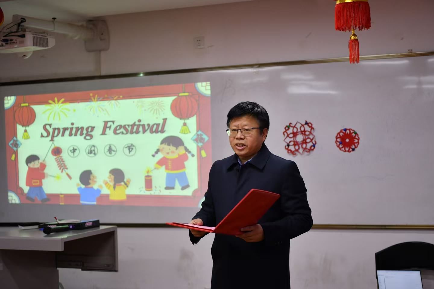 張驍勇發(fā)表新年致辭,向寒假期間留校的國際學(xué)生送上了誠摯的新春祝福。他指出,國際學(xué)生作為文化交流使者的重要性,在華感受新春民俗,鼓勵(lì)他們在新的一年里繼續(xù)探索中國文化,積極參與學(xué)校和社會(huì)的各項(xiàng)實(shí)踐活動(dòng)。