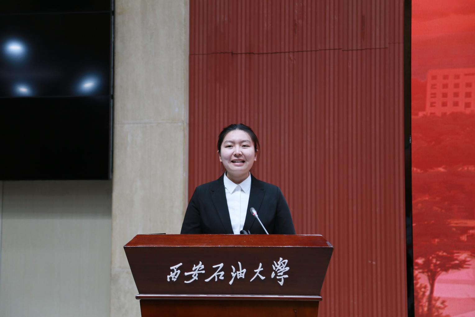 來自化學化工學院環(huán)境工程專業(yè)的王雅婷,作為獲獎學生代表發(fā)表感言。她已保研至山東大學環(huán)境科學與工程專業(yè),此次獲獎是對她優(yōu)異表現(xiàn)的充分肯定。她表達了對學校、陜西省杜斌丞教育思想研究會和正泰公益基金會的感激之情,并分享了自己的學習經(jīng)驗與成長感悟。王雅婷表示,要傳承杜斌丞先生“讀書勿忘救國”的精神,把專業(yè)學習與國家需求緊密結合。她將帶著這份榮譽繼續(xù)前行,在新的征程中貢獻青春力量。