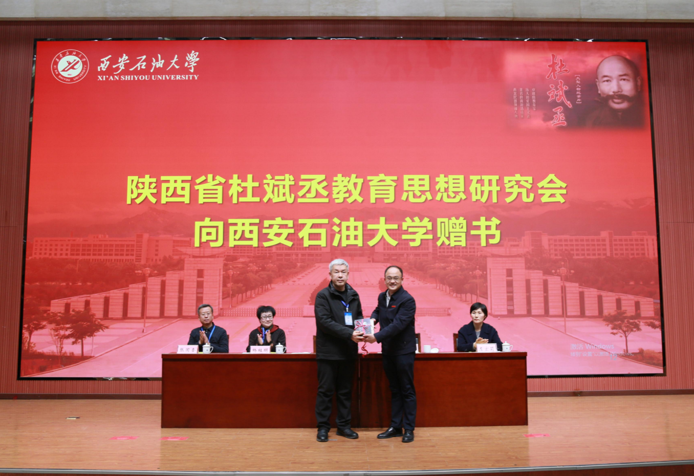 最后,陜西省杜斌丞教育思想研究會向西安石油大學捐贈了杜斌丞烈士事跡書籍,為同學們提供了寶貴的精神財富。