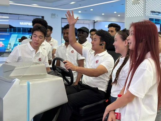 師生們深入生產(chǎn)車間,實(shí)地觀摩整車制造流程。全自動(dòng)化焊接車間和總裝車間高度智能化的生產(chǎn)線令同學(xué)們贊嘆不已。特別是同一條生產(chǎn)線靈活生產(chǎn)多種車型的能力,充分展現(xiàn)了中國制造的技術(shù)實(shí)力與效率優(yōu)勢。留學(xué)生們表示,親眼目睹現(xiàn)代化工業(yè)體系的運(yùn)行模式,讓他們對(duì)中國制造業(yè)有了全新認(rèn)知。