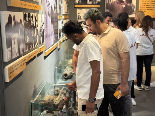 下午,師生們前往八路軍東渡黃河舊址和司馬遷祠參觀學(xué)習(xí)。在八路軍東渡黃河紀(jì)念展館,展柜中陳列的戰(zhàn)士們使用過的槍械、衣物、信件等物品,真實(shí)再現(xiàn)了那段艱苦卓絕的抗戰(zhàn)歲月。留學(xué)生們被中國共產(chǎn)黨領(lǐng)導(dǎo)下的人民軍隊(duì)英勇無畏、舍生忘死的精神深深震撼,表示此次參觀加深了他們對(duì)中國近現(xiàn)代史的理解,并對(duì)中國人民面對(duì)外敵入侵時(shí)展現(xiàn)的堅(jiān)強(qiáng)意志和不屈精神深感敬佩。