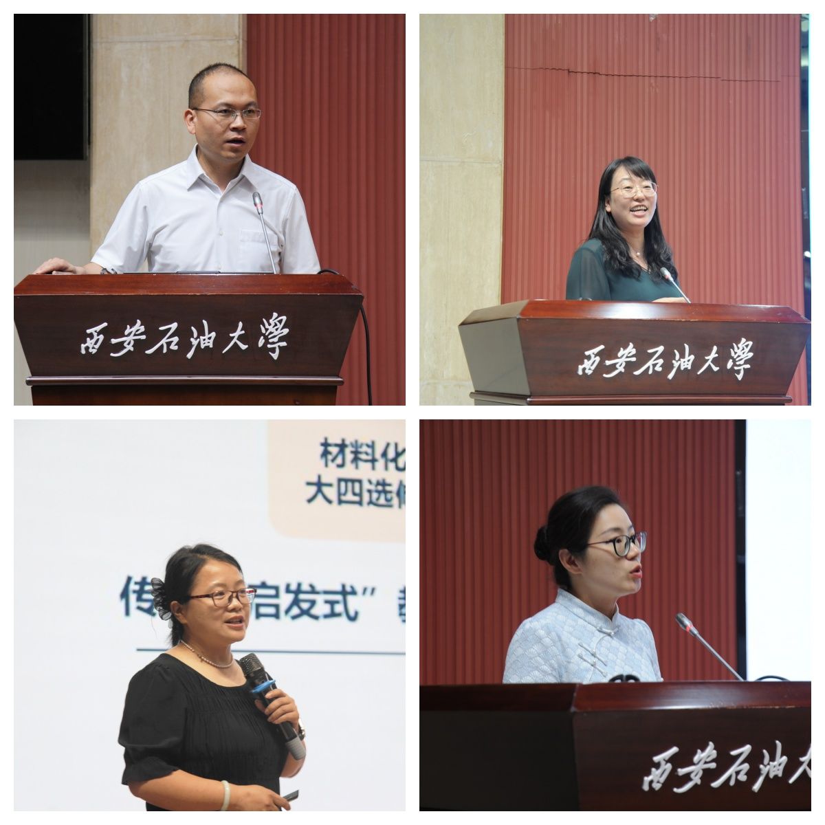 在石油高校教育教學(xué)創(chuàng)新論壇環(huán)節(jié),西北工業(yè)大學(xué)張磊磊、中國(guó)石油大學(xué)(華東)甄玉花、東北石油大學(xué)顏冰、西南石油大學(xué)傅晶晶四位專(zhuān)家分別圍繞“激發(fā)興趣與啟發(fā)思考的課程思政創(chuàng)新設(shè)計(jì)”、“共筑材料故事,打造三有課堂—國(guó)家一流課程‘材料物理”課程建設(shè)談’、“紓解課程思政建設(shè)問(wèn)題,解碼價(jià)值塑造的隱形路徑”、“新文科課程思政團(tuán)隊(duì)建設(shè)經(jīng)驗(yàn)”等主題作了前沿而務(wù)實(shí)的報(bào)告,分享了寶貴的實(shí)踐經(jīng)驗(yàn)與創(chuàng)新理念,為深化石油特色課程思政建設(shè)提供了新思路和新路徑,也為我校教師帶來(lái)了深刻啟發(fā)。