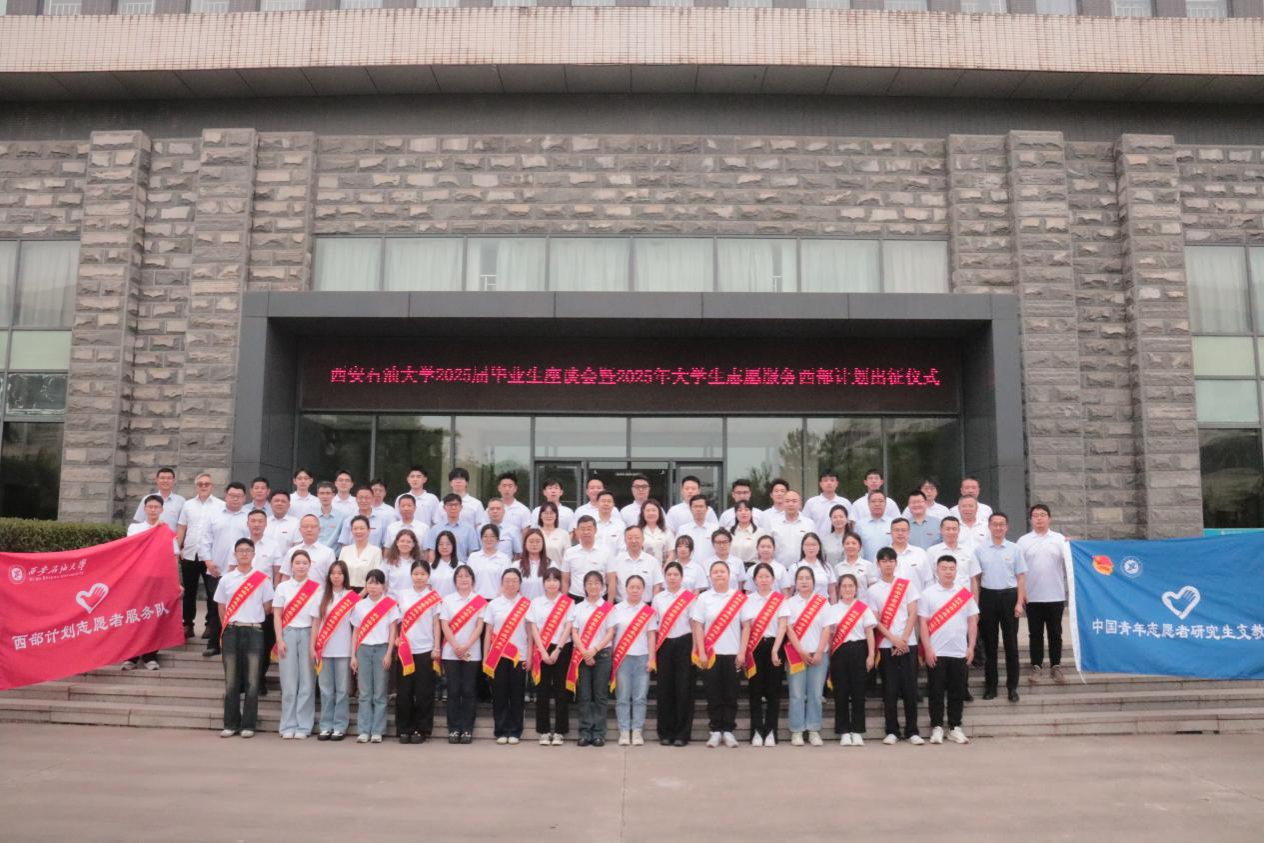 6月17日下午,我校2025屆畢業(yè)生座談會暨2025年大學(xué)生志愿服務(wù)西部計劃出征儀式在鄠邑校區(qū)圖書館第一會議室舉行。校長王進(jìn)富,黨委辦公室(校長辦公室)、黨委宣傳部、黨委學(xué)生工作部、黨委保衛(wèi)部、校團(tuán)委、教務(wù)處、實驗室管理處、研究生工作部、后勤處、高教研究與評估督導(dǎo)中心、圖書館、校醫(yī)院、國際教育學(xué)院主要負(fù)責(zé)人,各院(系)主管學(xué)生工作負(fù)責(zé)人和44名來自各院(系)的2025屆畢業(yè)生代表參加會議,會議由副校長種宇宏主持。