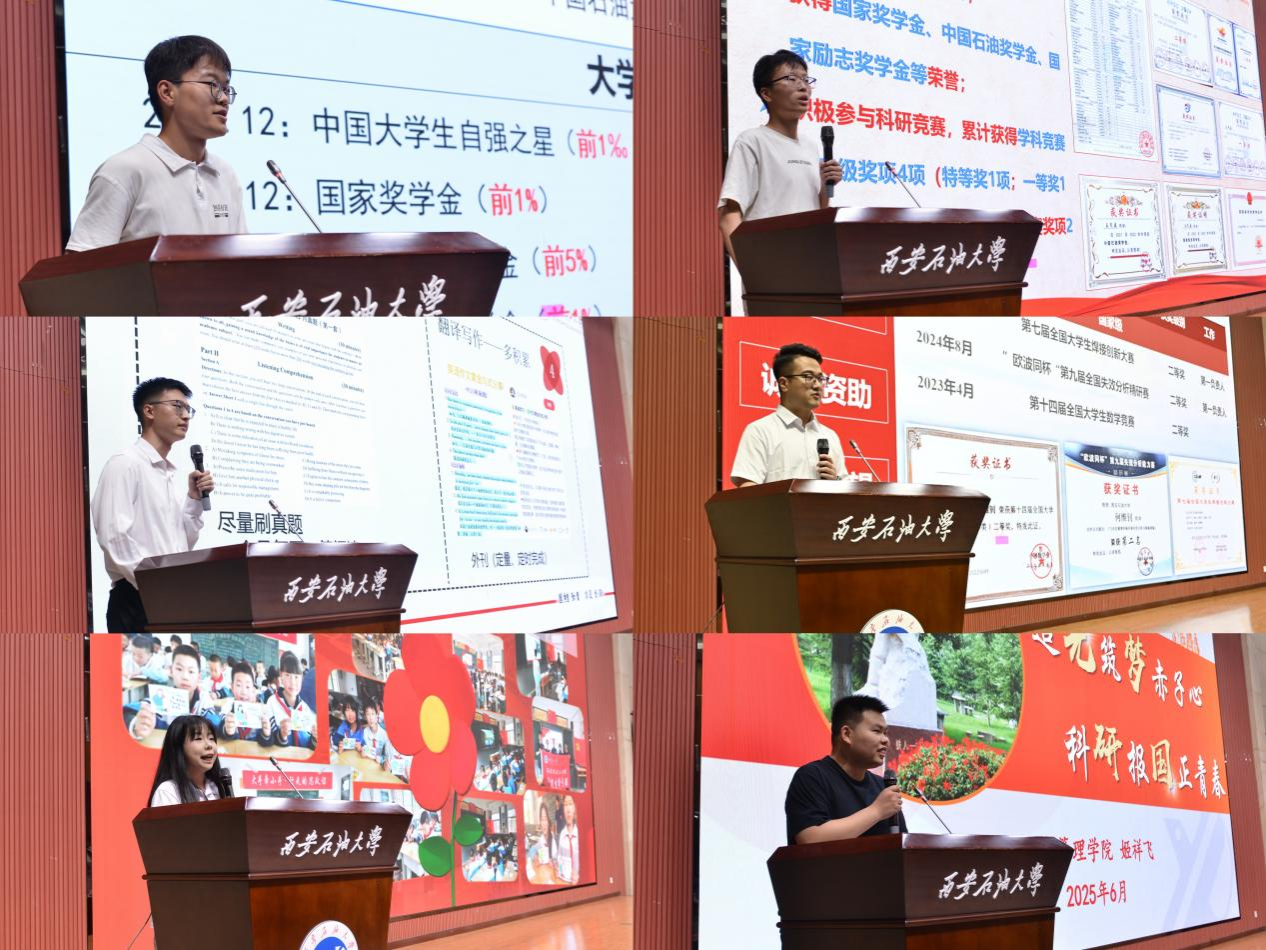 六位來(lái)自不同學(xué)院的優(yōu)秀受助學(xué)子,誠(chéng)摯地分享了他們奮斗的青春故事與成長(zhǎng)感悟,專(zhuān)業(yè)學(xué)習(xí)的高效方法,平衡學(xué)業(yè)與社會(huì)實(shí)踐的時(shí)間管理技巧,及面對(duì)困難的心態(tài)調(diào)適經(jīng)驗(yàn)。他們的故事里有學(xué)業(yè)拔尖,將感恩之心化為志愿服務(wù)的溫暖實(shí)踐;有心懷能源報(bào)國(guó)志,刻苦攻關(guān),成功推免至頂尖學(xué)府的奮進(jìn)足跡;有在學(xué)科競(jìng)賽中披荊斬棘、勇攀高峰的執(zhí)著追求;有潛心鉆研,在學(xué)術(shù)前沿篤行追夢(mèng)的堅(jiān)定身影;有百折不撓,在探索中毅勇前行的不屈精神;有從受助者成長(zhǎng)為助人者,將溫暖傳遞的動(dòng)人蛻變。石工學(xué)子安世亮表示:“國(guó)家和學(xué)校的獎(jiǎng)助政策讓我能夠心無(wú)旁騖的求學(xué),更是精神上的鼓舞,也時(shí)刻提醒我要懷感恩之心,立心中之志。”經(jīng)管院研究生姬祥飛鼓勵(lì)學(xué)弟學(xué)妹們:“我們新時(shí)代青年要敢于有夢(mèng)、勇于追夢(mèng)、勤于圓夢(mèng)?!彼麄兊墓适码m各不相同,但都閃耀著自強(qiáng)不息、感恩奉獻(xiàn)的光芒,深深打動(dòng)了在場(chǎng)的每一位聽(tīng)眾。