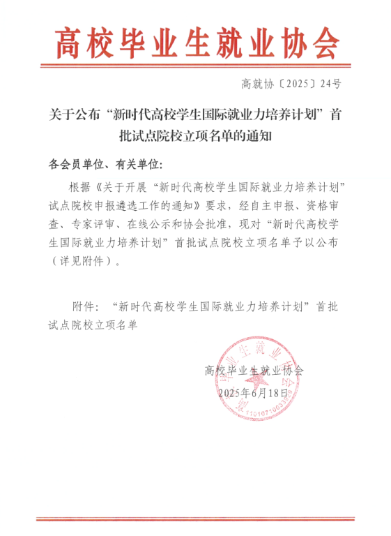我校獲批“新時(shí)代高校學(xué)生國(guó)際就業(yè)力培養(yǎng)計(jì)劃”首批立項(xiàng)試點(diǎn)院校