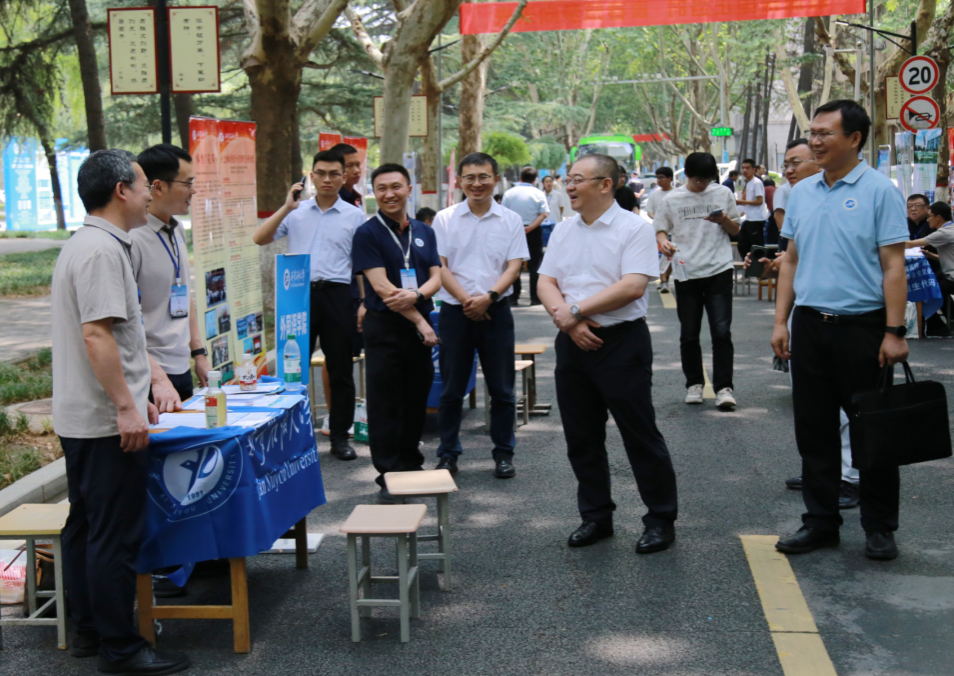 6月26日-28日,學(xué)校還組織參加了第十三屆陜西教育博覽會暨招生咨詢會。展覽期間,省委教育工委書記、省教育廳廳長王樹聲、副廳長吳振磊等領(lǐng)導(dǎo)在校長王進(jìn)富、副校長張君濤的陪同下蒞臨我校展位視察指導(dǎo)工作。宣傳部、教務(wù)處、科研處、研究生院、馬克思主義學(xué)院、各院(系)專家教授及招生志愿者參加了本次博覽會暨招生咨詢會。本屆博覽會以“AI賦能教育發(fā)展,推動教育強(qiáng)省建設(shè)”為主題。學(xué)校在會展中心1號館設(shè)立展廳,以展板、視頻、實物等方式全面呈現(xiàn)學(xué)校發(fā)展歷程、辦學(xué)特色、平臺實力、培養(yǎng)模式等,吸引了眾多考生、家長前來觀看咨詢。各院(系)骨干教師、志愿者組成的招生咨詢團(tuán)隊現(xiàn)場為考生和家長提供權(quán)威解讀,對考生志愿填報進(jìn)行詳細(xì)指導(dǎo)。