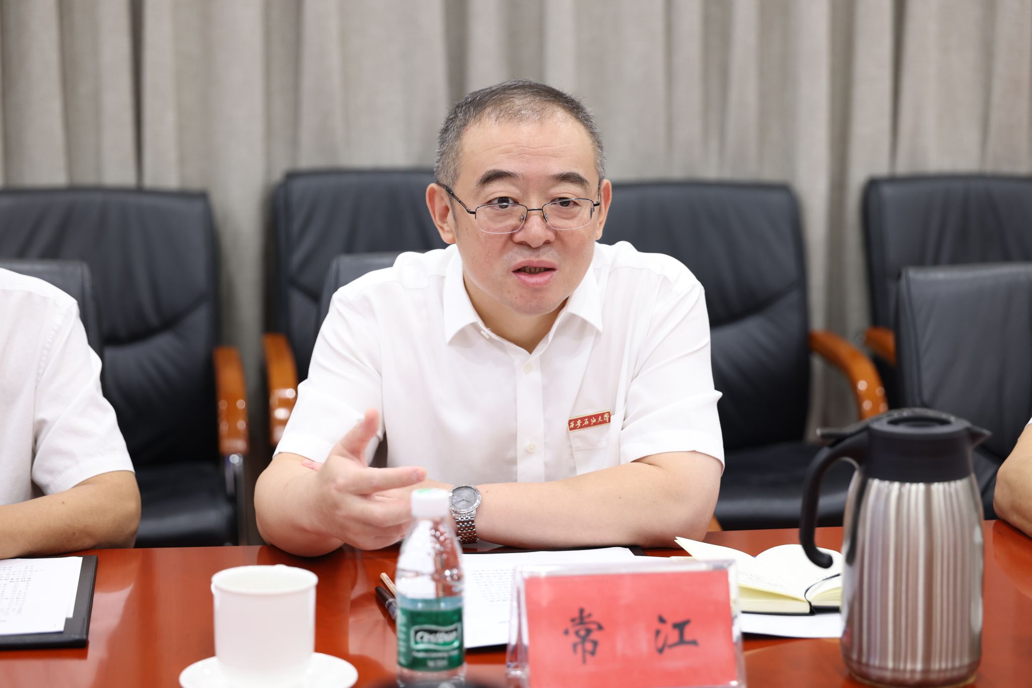 孫尚武對常江一行來訪表示熱烈歡迎。他表示,中國日報社積極履行“聯(lián)接中外、溝通世界”職責(zé),深入貫徹黨的二十屆三中全會精神,聚焦構(gòu)建更有效力的國際傳播體系,通過多語種、全媒體平臺講好中國故事、傳播好中國聲音,提升中華文化影響力。西安石油大學(xué)是國家能源領(lǐng)域重要人才培養(yǎng)基地,在學(xué)科建設(shè)和國際化教育方面成果突出,此次合作是高校與媒體協(xié)同賦能國際傳播的創(chuàng)新探索。雙方攜手將有利于為全球能源治理貢獻(xiàn)中國智慧,為推動中華文化更好走向世界貢獻(xiàn)更大力量。