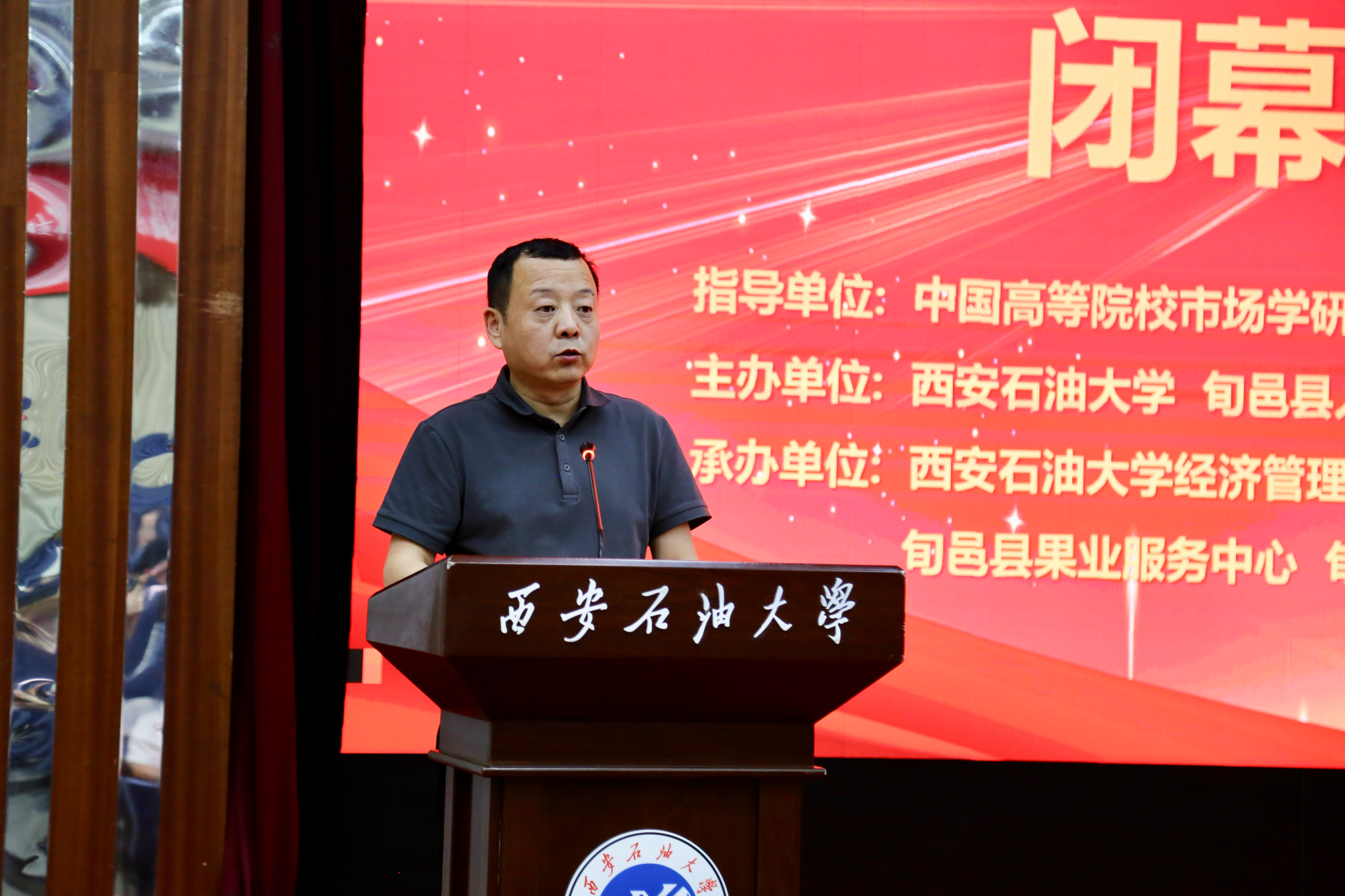 7月3日,第五屆“旬邑馬欄紅杯”全國大學生鄉(xiāng)村振興營銷挑戰(zhàn)賽閉幕式暨頒獎典禮在西安石油大學雁塔校區(qū)會議中心順利舉行。本屆賽事由西安石油大學、旬邑縣人民政府、陜西廣電融媒體集團三農(nóng)中心等單位共同主辦,中國高等院校市場學研究會為指導單位。咸陽市副市長葉新階、副秘書長何有明、農(nóng)業(yè)農(nóng)村局副局長袁野,陜西省果業(yè)中心綜合處處長張東峰,旬邑縣委副書記、縣長陳永勝、副縣長譚震,陜西廣電融媒體集團質(zhì)農(nóng)愛購平臺總經(jīng)理趙小飛,中國銀行咸陽分行行政事業(yè)部主任朱燕萍、陜西日報群眾新聞網(wǎng)副總經(jīng)理劉強,西安石油大學黨委副書記張木等出席閉幕式。參賽團隊、企業(yè)負責人百余人到場參會。