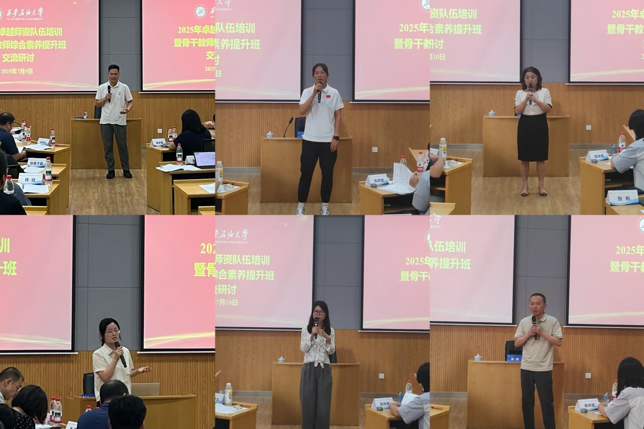 7月11日下午,培訓(xùn)班舉辦結(jié)業(yè)式。石油工程學(xué)院時(shí)宇、外國(guó)語學(xué)院馮娟、化學(xué)化工學(xué)院牛夢(mèng)龍、電子工程學(xué)院陳嬌娜、機(jī)械工程學(xué)院王天琦、馬克思主義學(xué)院王恩6名參訓(xùn)教師作交流發(fā)言,分享了學(xué)習(xí)心得體會(huì),表示通過研修開拓了學(xué)術(shù)視野,深化了思想認(rèn)識(shí),提升了綜合素養(yǎng),今后將學(xué)以致用,行勝于言,把學(xué)習(xí)成果運(yùn)用到實(shí)際工作中,為學(xué)校各項(xiàng)事業(yè)發(fā)展貢獻(xiàn)力量。