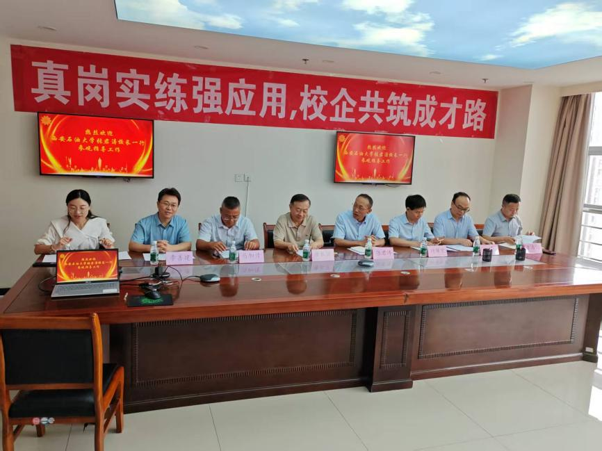授牌儀式上,張君濤代表學(xué)校向長(zhǎng)之河公司在共建校外實(shí)習(xí)實(shí)踐教學(xué)基地過程中給予的支持,以及長(zhǎng)期以來對(duì)學(xué)校發(fā)展的大力幫助表示誠(chéng)摯感謝。他簡(jiǎn)要回顧了學(xué)校70余年的辦學(xué)歷史與發(fā)展脈絡(luò),詳細(xì)介紹了學(xué)校第三次黨代會(huì)擘畫的發(fā)展藍(lán)圖、“三個(gè)小目標(biāo)” 取得的階段性成果,以及形成的 “三小三大三氛圍” 良好發(fā)展態(tài)勢(shì)。張君濤指出,學(xué)校因 “油” 而生、為 “油” 而興,長(zhǎng)期以來聚焦服務(wù)國(guó)家能源重大戰(zhàn)略領(lǐng)域,學(xué)校以石油石化為鮮明特色,堅(jiān)守 “立足陜西、面向西北、服務(wù)全國(guó)” 的辦學(xué)定位,培養(yǎng)了大批具備 “四實(shí)一新” 特質(zhì)的高素質(zhì)專業(yè)技術(shù)人才。學(xué)校辦學(xué)特色與長(zhǎng)之河公司的發(fā)展方向、產(chǎn)業(yè)布局高度契合。他表示,希望以此次走訪為契機(jī),深化校企傳統(tǒng)情誼,推動(dòng)合作向縱深發(fā)展,在學(xué)生就業(yè)、“卓工” 人才與專業(yè)學(xué)位研究生貫通培養(yǎng)、實(shí)踐教學(xué)基地共建等領(lǐng)域發(fā)揮雙方優(yōu)勢(shì)、彰顯特色,探索校企合作與產(chǎn)教融合的新范式、新路徑,助力教育、科技、人才協(xié)同高質(zhì)量發(fā)展,為保障國(guó)家能源安全戰(zhàn)略貢獻(xiàn)合力。