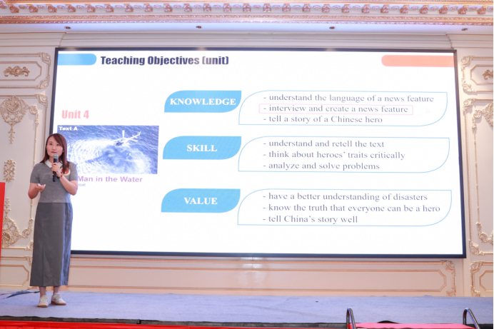 在比賽中,苗旸、拓葳、鐘澤波、余琴、李芳蕾團(tuán)隊(duì)以“講好中國故事,促進(jìn)文明互鑒”為核心,深入挖掘教材內(nèi)涵,巧妙融合數(shù)字化、智能化教學(xué)手段,構(gòu)建了“以學(xué)生為中心、以能力為導(dǎo)向”的創(chuàng)新教學(xué)模式。團(tuán)隊(duì)通過案例教學(xué)、情景模擬、跨文化對(duì)比等多元方法,充分展現(xiàn)了我校在智慧教育領(lǐng)域的探索成果。