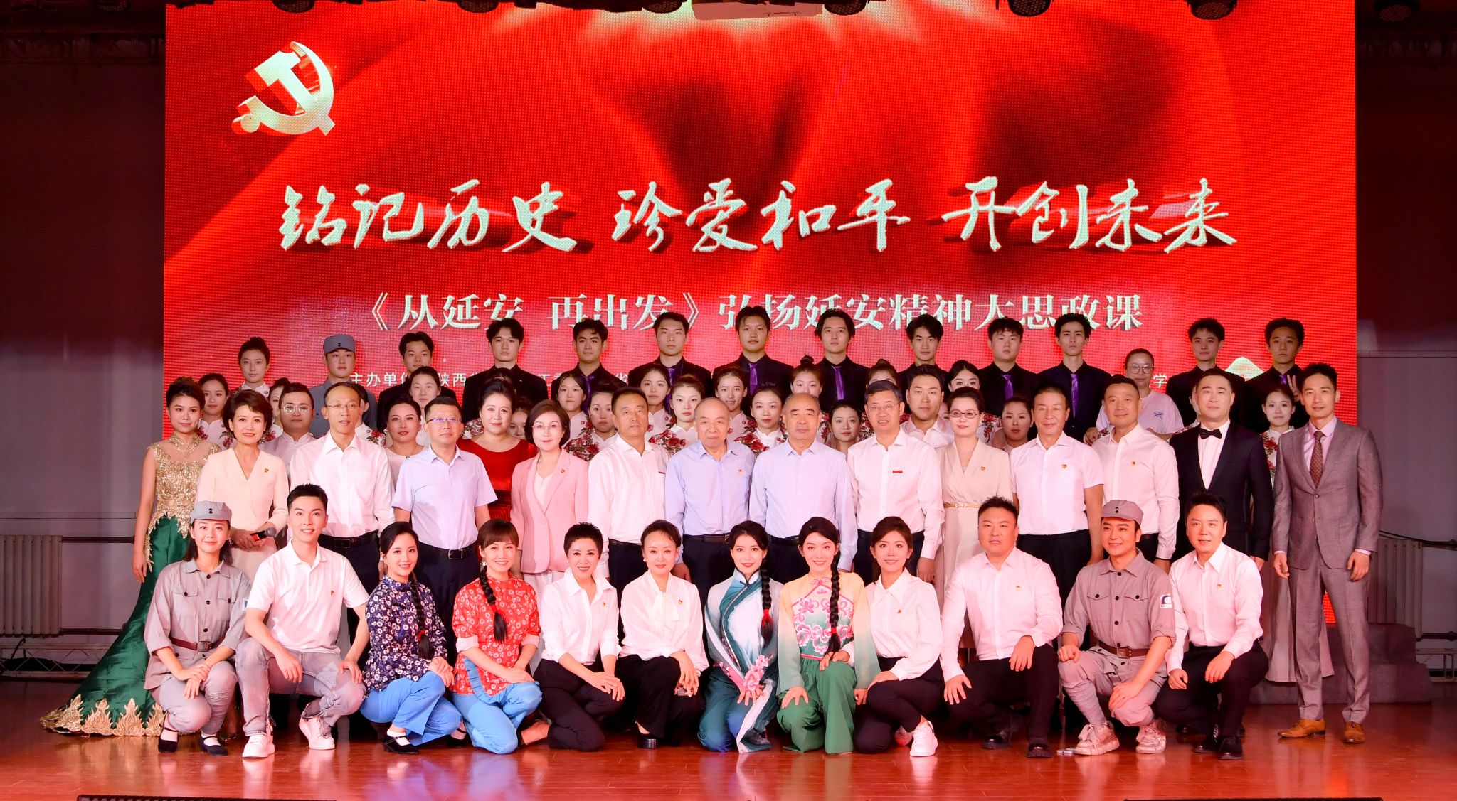活動(dòng)分為序幕、信念之路、思想之炬、為民之心、奮進(jìn)之力四大篇章、尾聲,包括《延安頌》《延安窯洞有馬列主義》《全心全意為人民服務(wù)的楷模》《領(lǐng)航》等8個(gè)節(jié)目,并由4位知名專家分別圍繞“為什么中國(guó)的希望在延安”“為什么延安窯洞有馬列主義”“為什么要將為人民服務(wù)作為黨的根本宗旨寫入《中國(guó)共產(chǎn)黨章程》”“為什么習(xí)近平總書記囑托無論將來物質(zhì)生活多么豐富,自力更生艱苦奮斗的精神一定不能丟”等核心問題,進(jìn)行深入淺出的理論闡釋,實(shí)現(xiàn)了文藝表達(dá)與思想教育的深度融合,活動(dòng)現(xiàn)場(chǎng)莊重?zé)崃?,洋溢著濃厚的紅色氛圍。其中,我校音樂系教師李強(qiáng)、田立分別演繹了《領(lǐng)航》、《山丹丹開花紅艷艷》歌曲,我校合唱團(tuán)以激昂的歌聲合唱了《延安頌》《領(lǐng)航》等曲目,傳遞出新時(shí)代青年繼承革命傳統(tǒng)、勇?lián)姑膱?jiān)定信念。