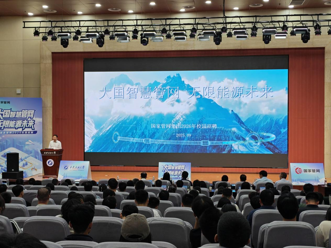 9月16日下午,國家石油天然氣管網(wǎng)集團有限公司2026屆畢業(yè)生校園招聘宣講會在我校鄠邑校區(qū)弘石報告廳隆重舉辦。國家管網(wǎng)集團相關(guān)代表,我校黨委委員、副校長種宇宏出席會議,各院(系)學生工作主要負責人,全體2026屆畢業(yè)班輔導員,畢業(yè)生代表400余人參加宣講活動。會議由學生工作部(處)部(處)長、就業(yè)創(chuàng)業(yè)指導中心主任王亮主持。