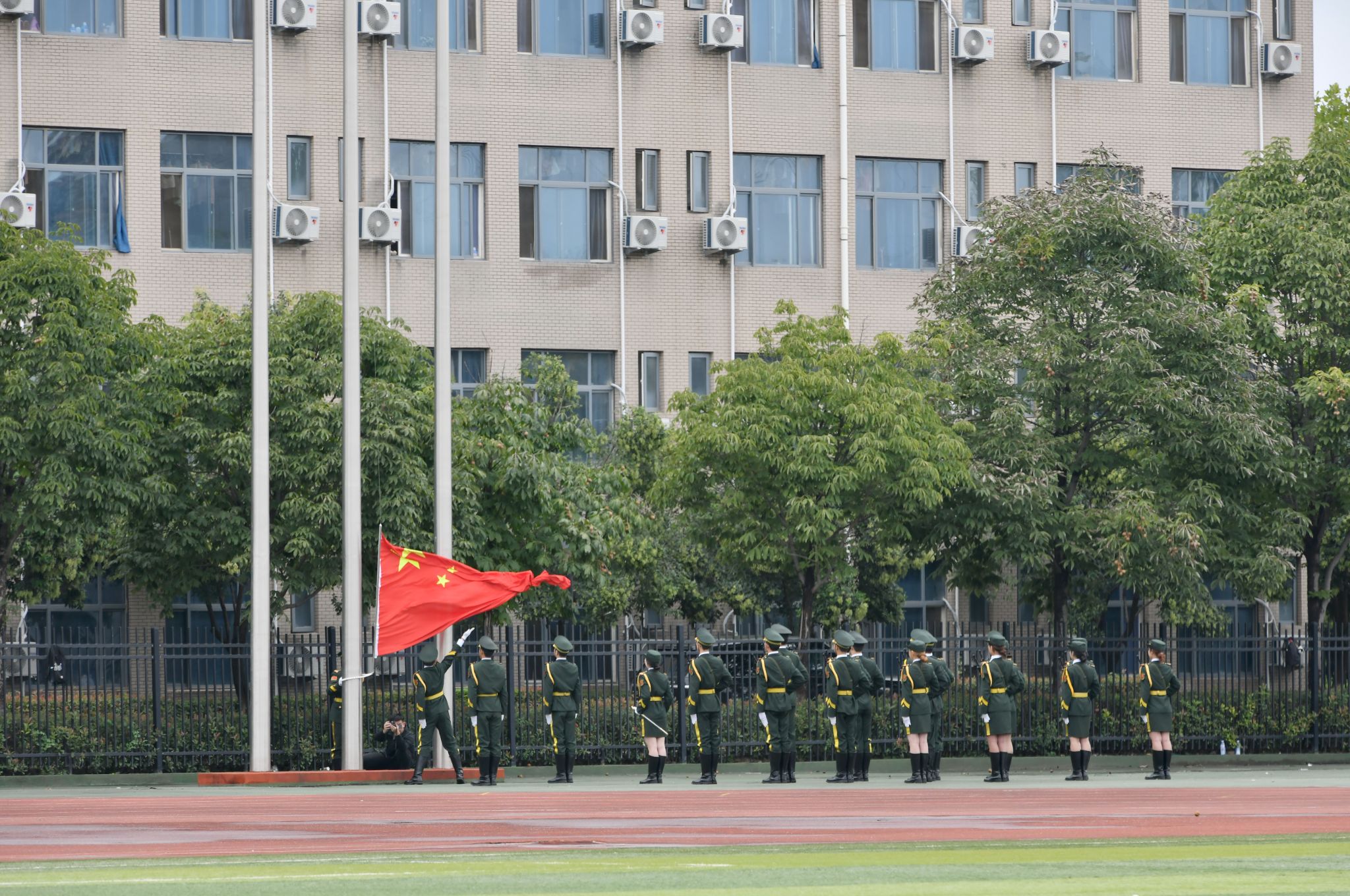 大會在莊嚴的升國旗儀式中拉開帷幕。國旗護衛(wèi)隊踢著鏗鏘的步伐,每一聲踏地都猶如驚雷叩擊青春熱血;鮮艷的五星紅旗冉冉升起,激昂的國歌聲響徹校園,在場師生、教官莊嚴肅立,向國旗行注目禮。