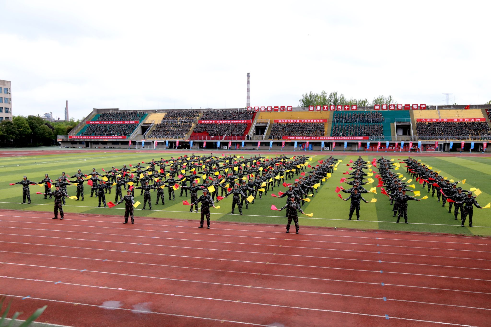 刺殺操展示----“殺”聲震天,氣勢磅礴,同學們手持訓練器材,以排山倒海之勢完成了一系列標準動作。