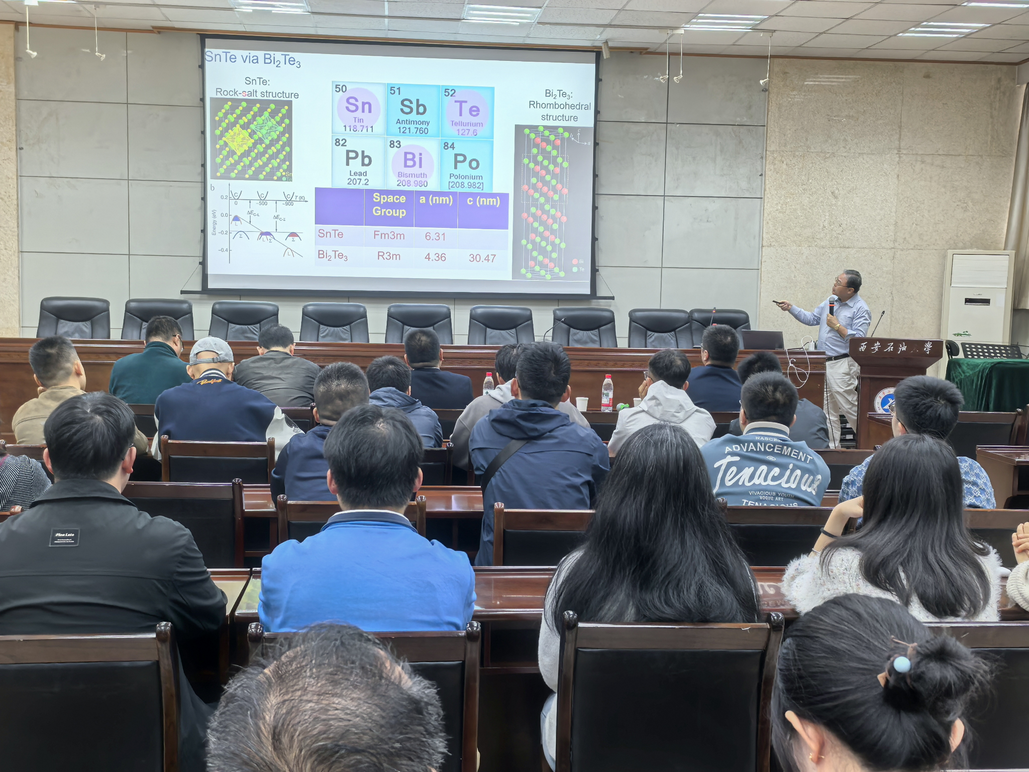 聘任儀式后,鄒進教授為學校師生作了《先進電子顯微學在納米材料中的應用及Nanoscale,Nanoscale Advance期刊介紹》的學術(shù)報告。他結(jié)合自身近40年的研究實踐,深入淺出地介紹了透射電子顯微鏡、原位電子顯微技術(shù)等尖端表征手段的原理與發(fā)展,分享了其團隊通過先進電子顯微鏡技術(shù)在低維納米材料形態(tài)、微結(jié)構(gòu)和化學特性方面取得的研究成果。并就“透射電鏡(TEM)操作”“國際交流合作”等問題與現(xiàn)場師生進行互動。