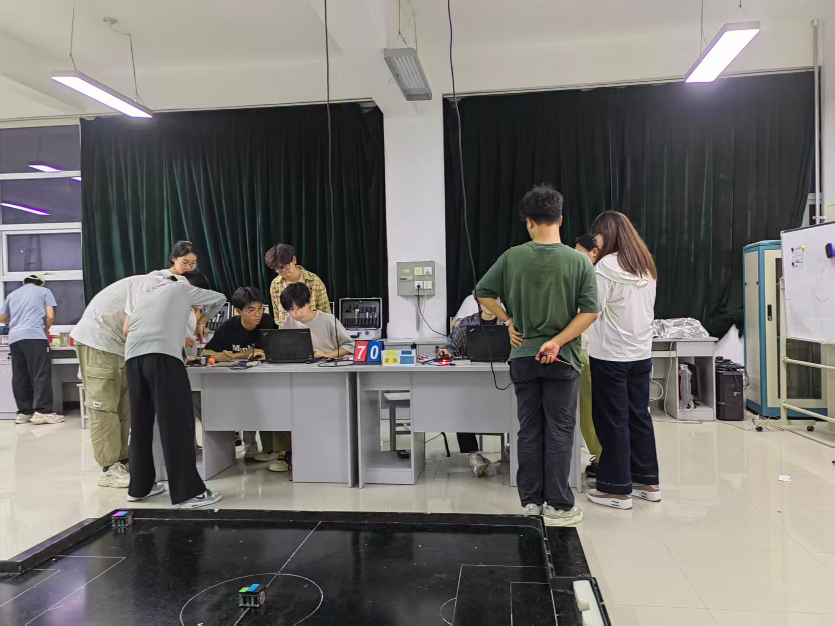 冠軍的獎杯,由機器人團隊師生無數(shù)個日夜的奮斗與汗水鑄就。為了備戰(zhàn)此次大賽,自今年年初便開始了校賽培訓、選拔和有計劃的集訓。FIRA小型組的機器人需要極高的敏捷性和復雜的多機協(xié)作算法,代碼組隊員們?yōu)榱艘粋€戰(zhàn)術動作,為了幾毫秒的速度提升,不斷進行算法優(yōu)化和調試。在高強度的比賽和訓練中,機器人面臨著持續(xù)的磨損與意外損傷,維護小組同學具備“外科醫(yī)生”般的精準與耐心,守護著機器人的“身體健康”,每日賽前進行全面的硬件檢測,賽后則立即進行保養(yǎng)檢修。從電機扭矩的細微校正、電池電量測定、小車胎皮檢測、傳感器靈敏度的反復標定,從線路連接的緊固到齒輪傳動的潤滑,確保了每一臺機器人都能以最佳狀態(tài)投入每一場比賽。正是有了平時的訓練有素,才有了賽場上的從容淡定。