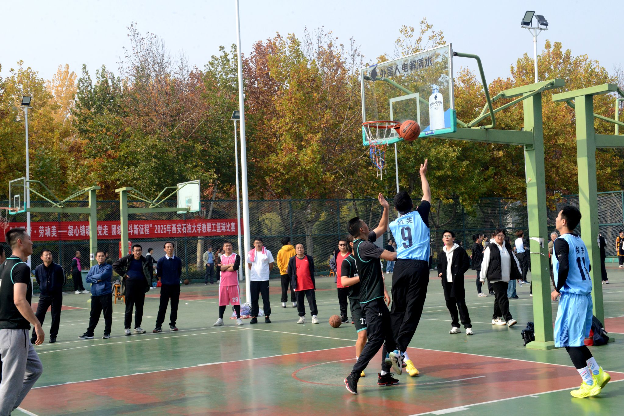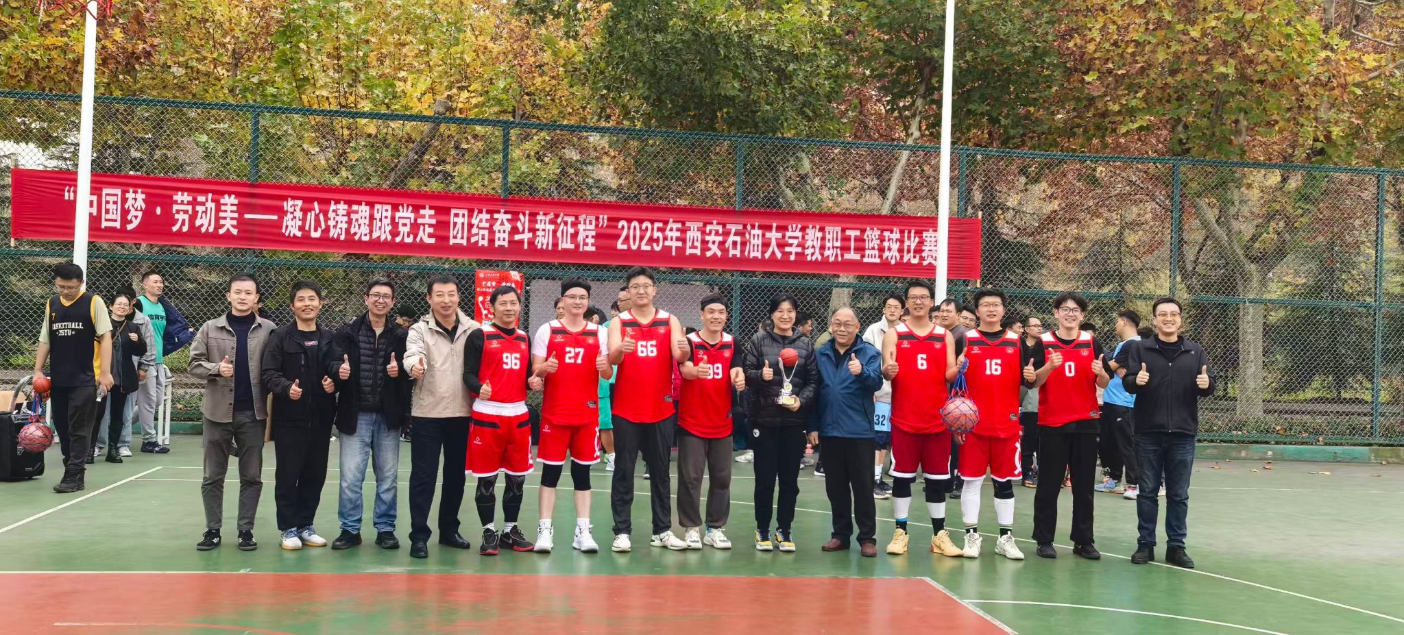 為豐富教職工業(yè)余文化生活,增強(qiáng)團(tuán)隊(duì)凝聚力,營(yíng)造積極向上的校園文化氛圍,由校工會(huì)主辦、體育學(xué)院承辦的“中國(guó)夢(mèng) 勞動(dòng)美——凝心鑄魂跟黨走 團(tuán)結(jié)奮斗新征程”2025年西安石油大學(xué)教職工籃球賽于10月20日在我校鄠邑校區(qū)東籃球場(chǎng)火熱開(kāi)賽。本次賽事吸引了來(lái)自全?;鶎庸?huì)13支代表隊(duì)、共計(jì)近110名教職工運(yùn)動(dòng)員踴躍參與。經(jīng)過(guò)3周、30場(chǎng)緊張激烈的比賽角逐,賽事于11月5日?qǐng)A滿落下帷幕。