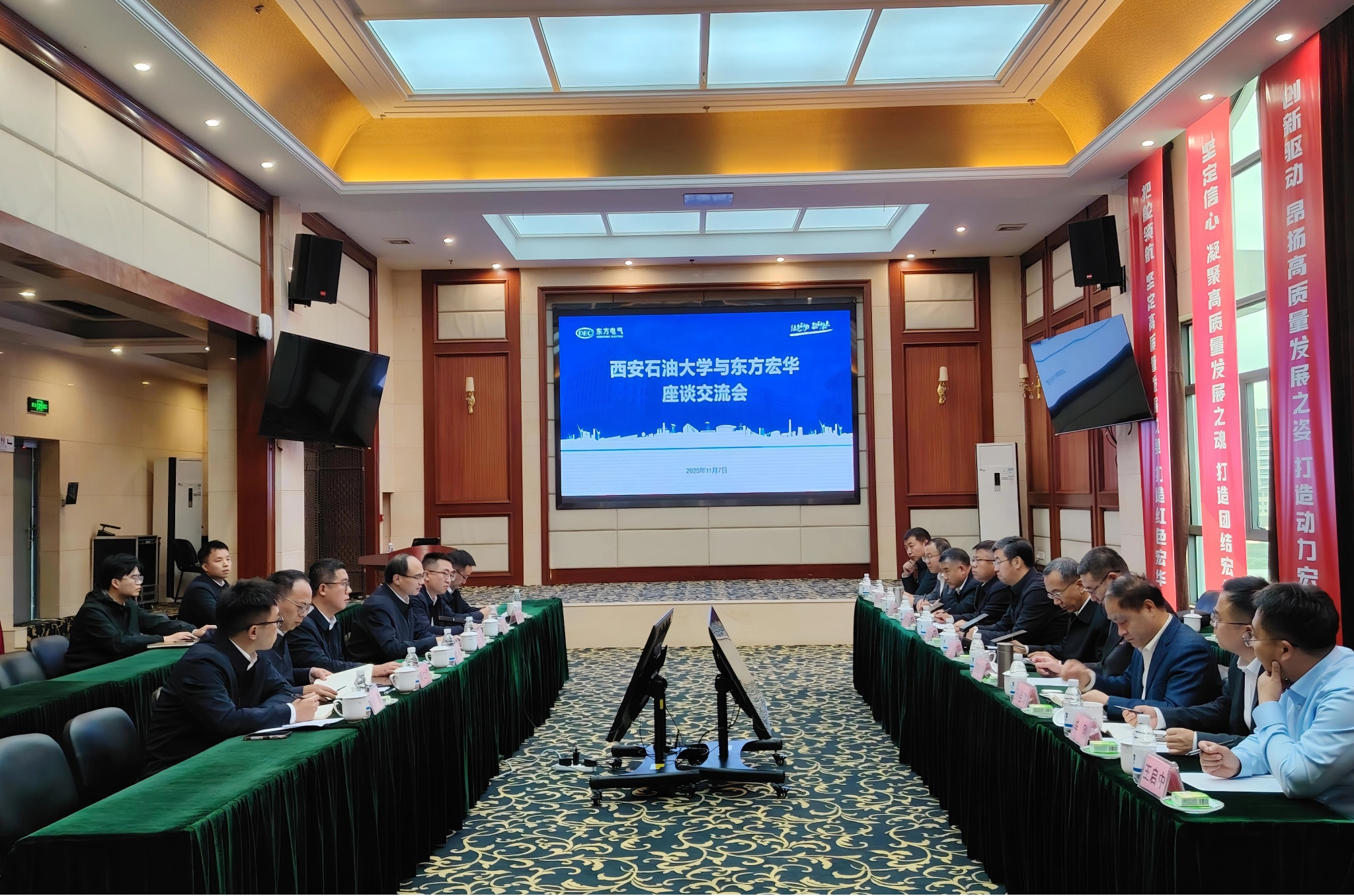 7日下午,王進(jìn)富一行與東方電氣宏華集團(tuán)有限公司黨委書記、董事長王旭及相關(guān)職能部門負(fù)責(zé)同志座談交流。雙方圍繞深化產(chǎn)教融合、基礎(chǔ)理論研究、科技創(chuàng)新、青年教師沉浸式入企、卓越工程師訂單人才培養(yǎng)、平臺和基地建設(shè)、畢業(yè)生實習(xí)就業(yè)、企業(yè)員工學(xué)歷提升和教育培訓(xùn)、國際化合作等方面合作初步達(dá)成意向。會前,王進(jìn)富一行還參觀了公司裝備生產(chǎn)現(xiàn)場。