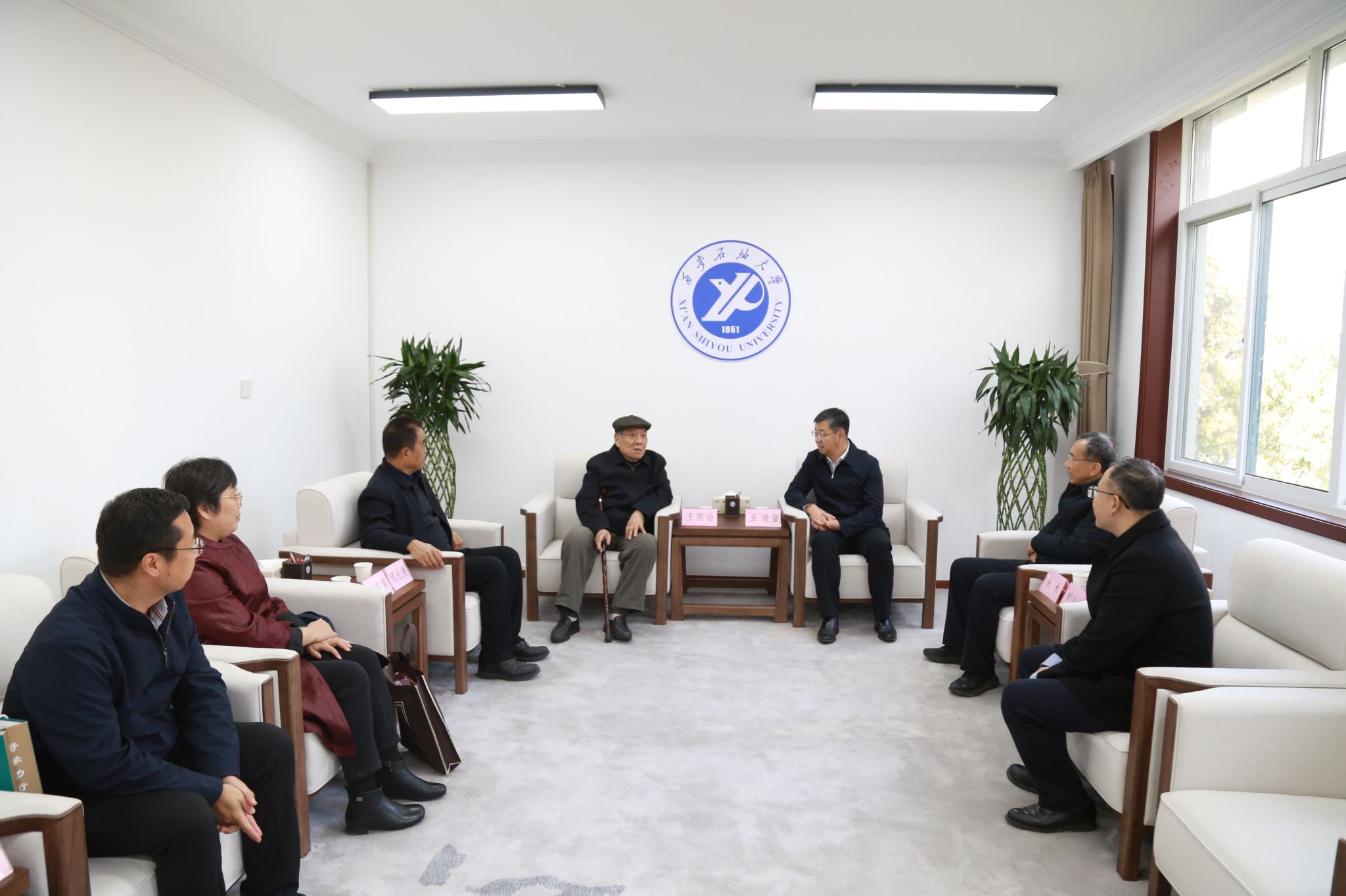 11月17日下午,我校54級校友王國治向?qū)W校捐贈了西安石油學?!叭脤W生”獎狀、西安石油學校畢業(yè)證明、1978年全國科技大會獎勵證書等珍貴檔案。校長王進富,校黨委副書記張木、程永清在鄠邑校區(qū)行政樓二樓接待室會見王國治及其女兒王慶菊女士,并進行了交流座談。