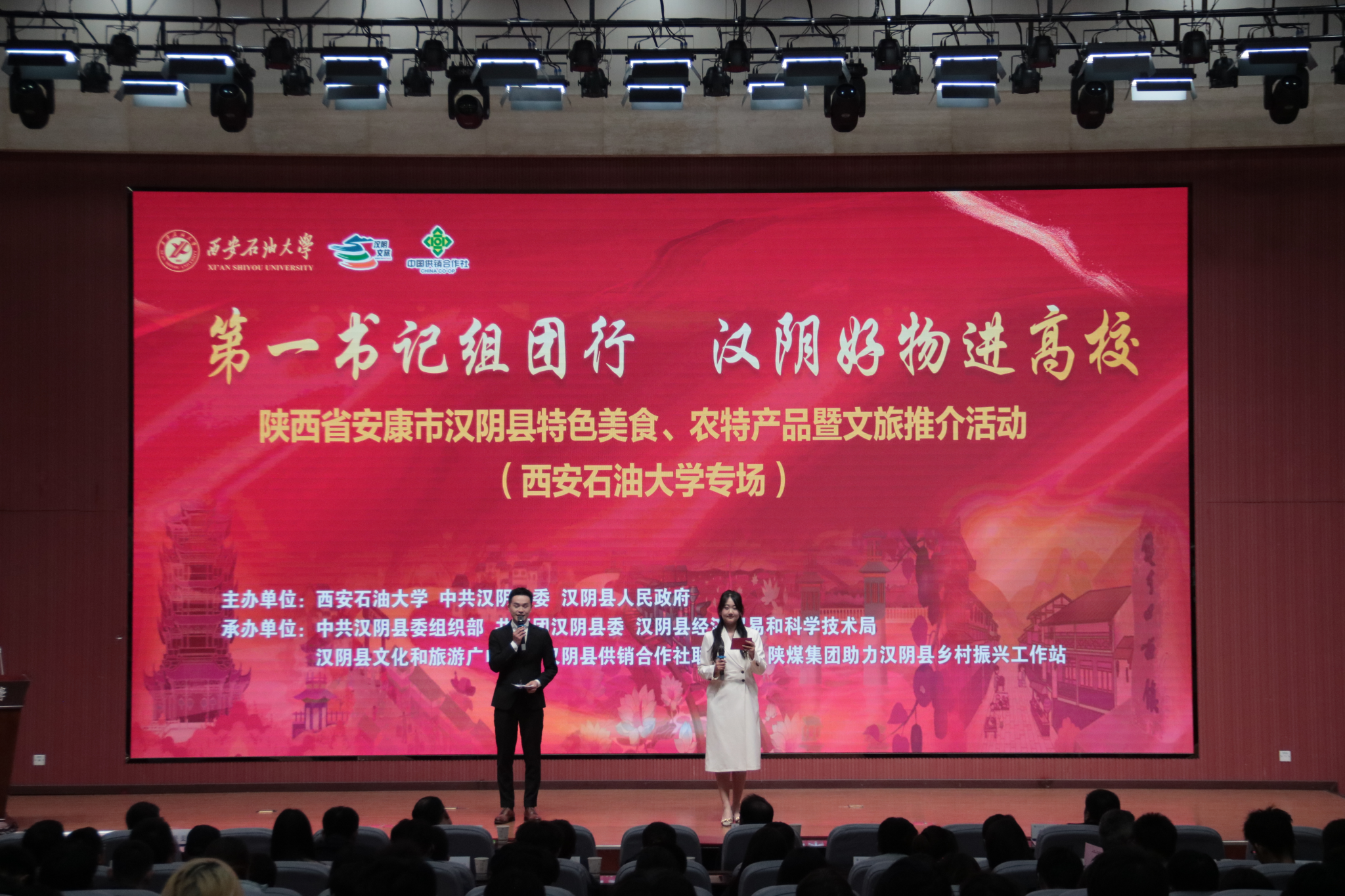 11月20日,“第一書記組團行?漢陰好物進高校”—陜西省安康市漢陰縣特色美食、農(nóng)特產(chǎn)品暨文旅推介活動在我校鄠邑校區(qū)成功舉辦。漢陰縣委副書記王眾義,縣委常委、組織部長李萬華,縣政府黨組成員屈斐斐,縣委組織部、共青團漢陰縣委、經(jīng)濟貿(mào)易和科學(xué)技術(shù)局、文化和旅游廣電局、供銷合作社聯(lián)合社、陜煤集團助力漢陰縣鄉(xiāng)村振興工作站等單位負責(zé)人,省市縣部分派駐漢陰縣駐村第一書記和工作隊員代表,我校副校長種宇宏,黨委組織部、黨委學(xué)生工作部、校團委、教務(wù)處、科研處、校友工作與合作交流處、后勤處、西安石大資產(chǎn)經(jīng)營有限公司等單位負責(zé)人,各院(系)團委(團總支)書記,學(xué)生代表參與活動。