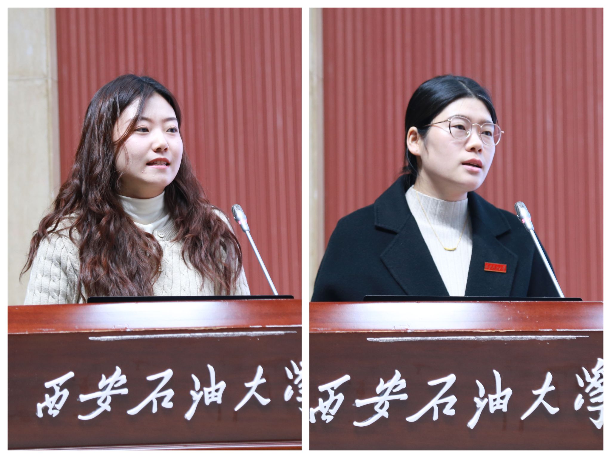 班主任代表登臺分享育人經驗。地質2501班班主任婁瑞以“新生班主任工作心得與建議:引導—連接—成長”為題,系統(tǒng)闡述了新生班主任工作的核心路徑:以“引導” 為學生錨定成長方向,以“連接”搭建信任互通的師生與同伴聯(lián)結,最終落腳于“成長”——通過喚醒學生內在動力,實現(xiàn)從集體適應到自主發(fā)展的飛躍。電信2402班班主任楊玲以“‘芯’火相傳,‘信’路引航——工科班級的精細化管理與價值引領”為題,從班主任角色定位、班級管理與建設、實踐創(chuàng)新與成效三個維度,分享了自己作為一名“土生土長”西石大人的成長經歷與工作思考。
