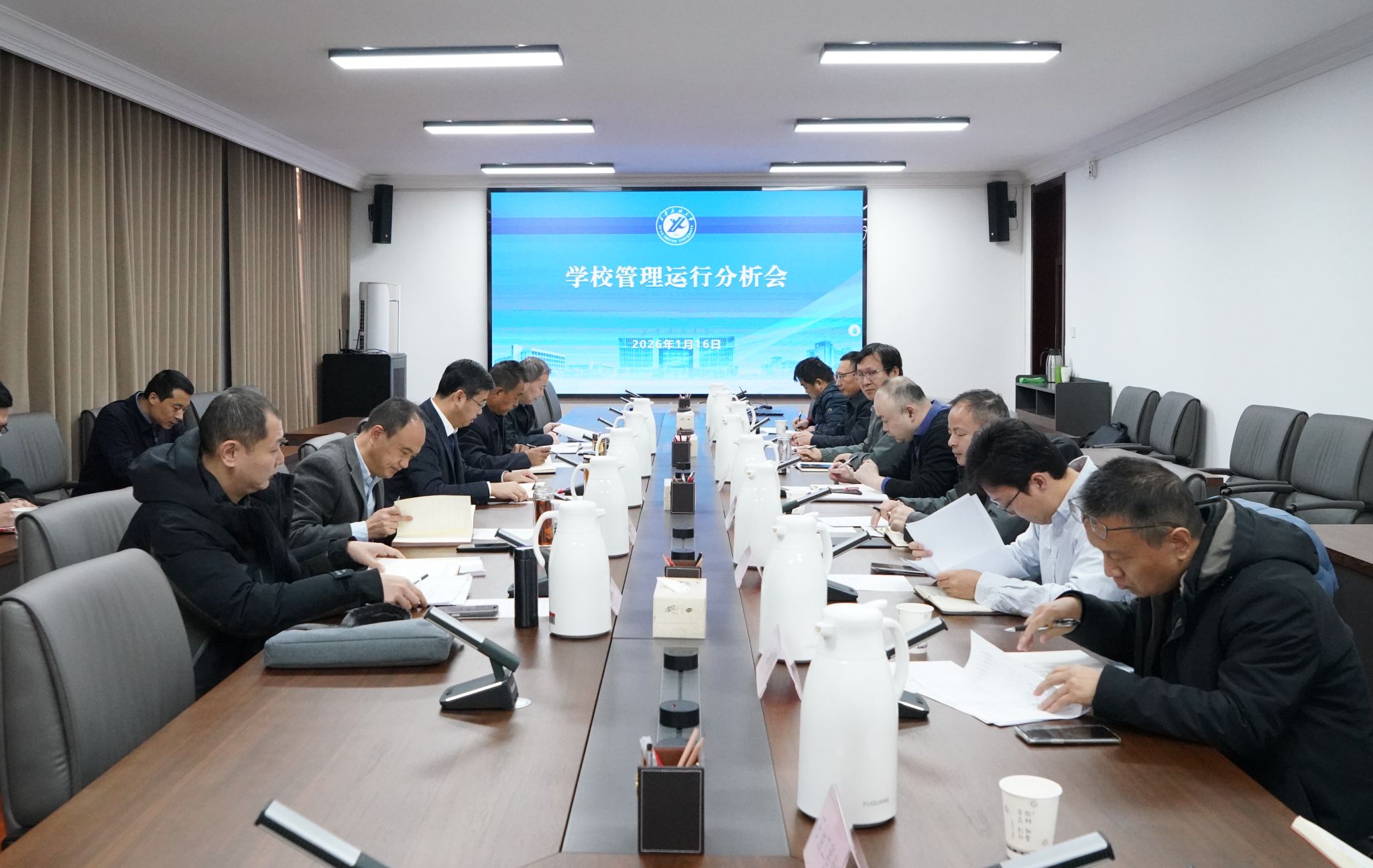 1月16日上午,學(xué)校在鄠邑校區(qū)第三會議室召開管理運行分析會,全面梳理現(xiàn)有制度體系與實際運行狀況,深入分析突出問題,科學(xué)謀劃2026年改革創(chuàng)新工作。校長王進富主持會議并講話,校黨委副書記程永清、副校長趙健出席會議。